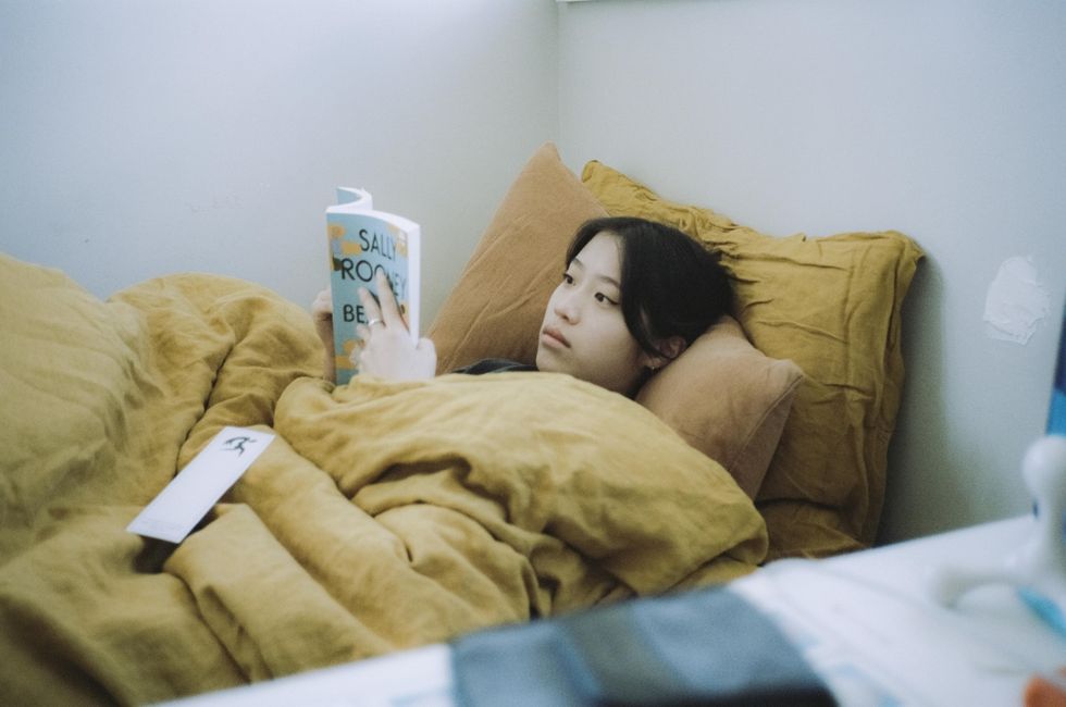 Since our relationship has been a big inspiration on my new project, we decided to take photos of a day in our lives in October 2021. I started the day by doing some additional production on a mix I'm finishing off, and she slept-in, reading her new book. My recently bleached hair was getting pretty ratty, so we decided to dye it again before I go into this new press rollout. A huge part of our process together is collecting reference images in a collaborative folder, which we flip through anytime we need some inspiration. We visited Kinokuniya, our favourite book store to find some new art books. I am a recovering coffee-table book addict, so I just browsed and took photos of any pages I liked. A book about Ryuichi Sakamoto — my hero — caught my eye. Jacinthe spent a lot of time looking through David LaChapelle's retrospective book. Even though his work is a lot campier and stylish than ours, the production design and lighting is super inspiring.