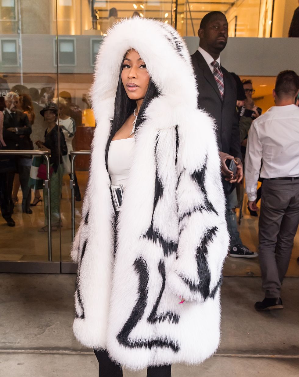 Our lord and savior, Nicki Minaj, has come through to serve us iconic, but hugely impractical, looks this NYFW. The latest? A full-fur coat and hood in the blazing September heat. I feel stressed and blessed, all at once.