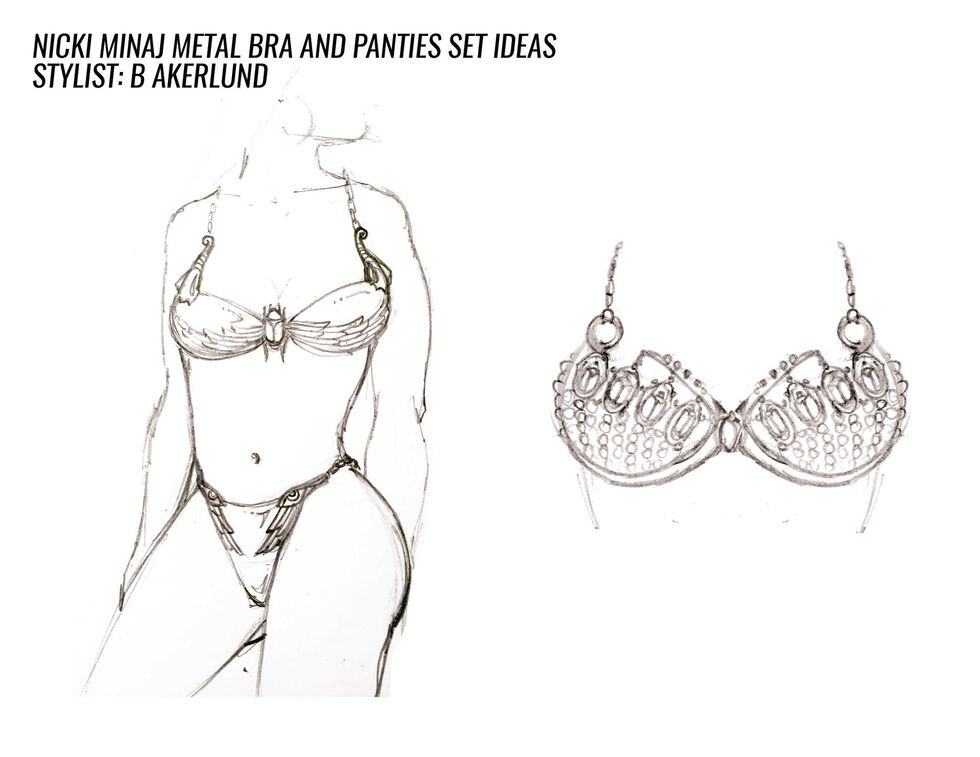 "This was actually our very first custom job with B. Åkerlund," Habana told PAPER. "She approached us with this task and wanted a more elevated, Egyptian-inspired version of a solid metal bikini set. We've made large scale things before, but this one was definitely a challenge because the timing was tight, and Nicki Minaj has such incredible body proportions that we needed to make sure this fit right. Luckily B and her team sent us a silicone model of Nicki's body so we worked with our bench jeweler to shape the cup and panty base, while we carved out the wing details. It all came together so seamlessly. We never expected the full look to be so amazing."