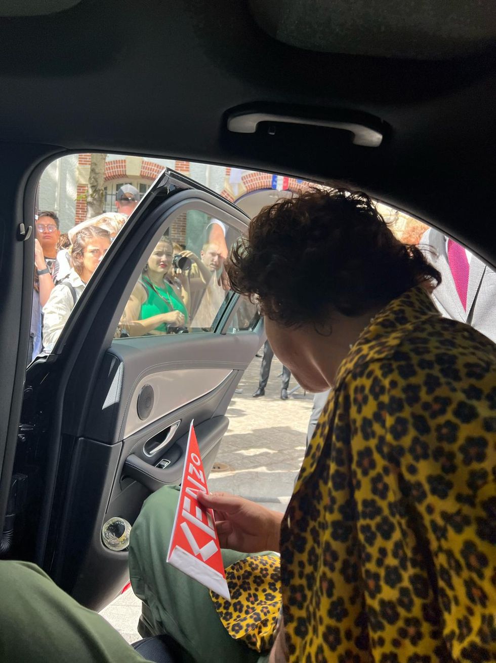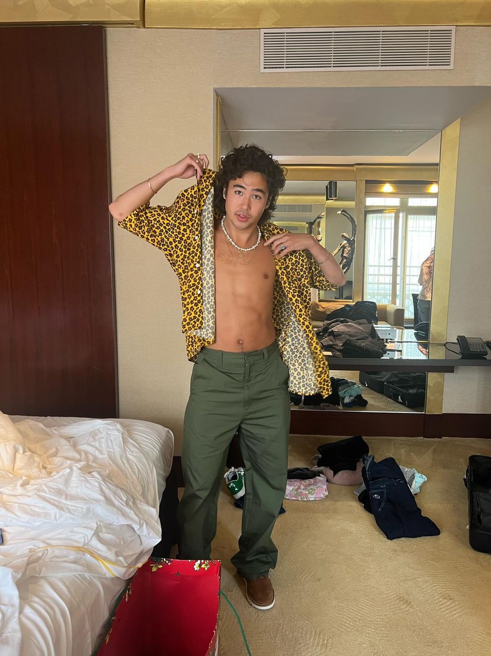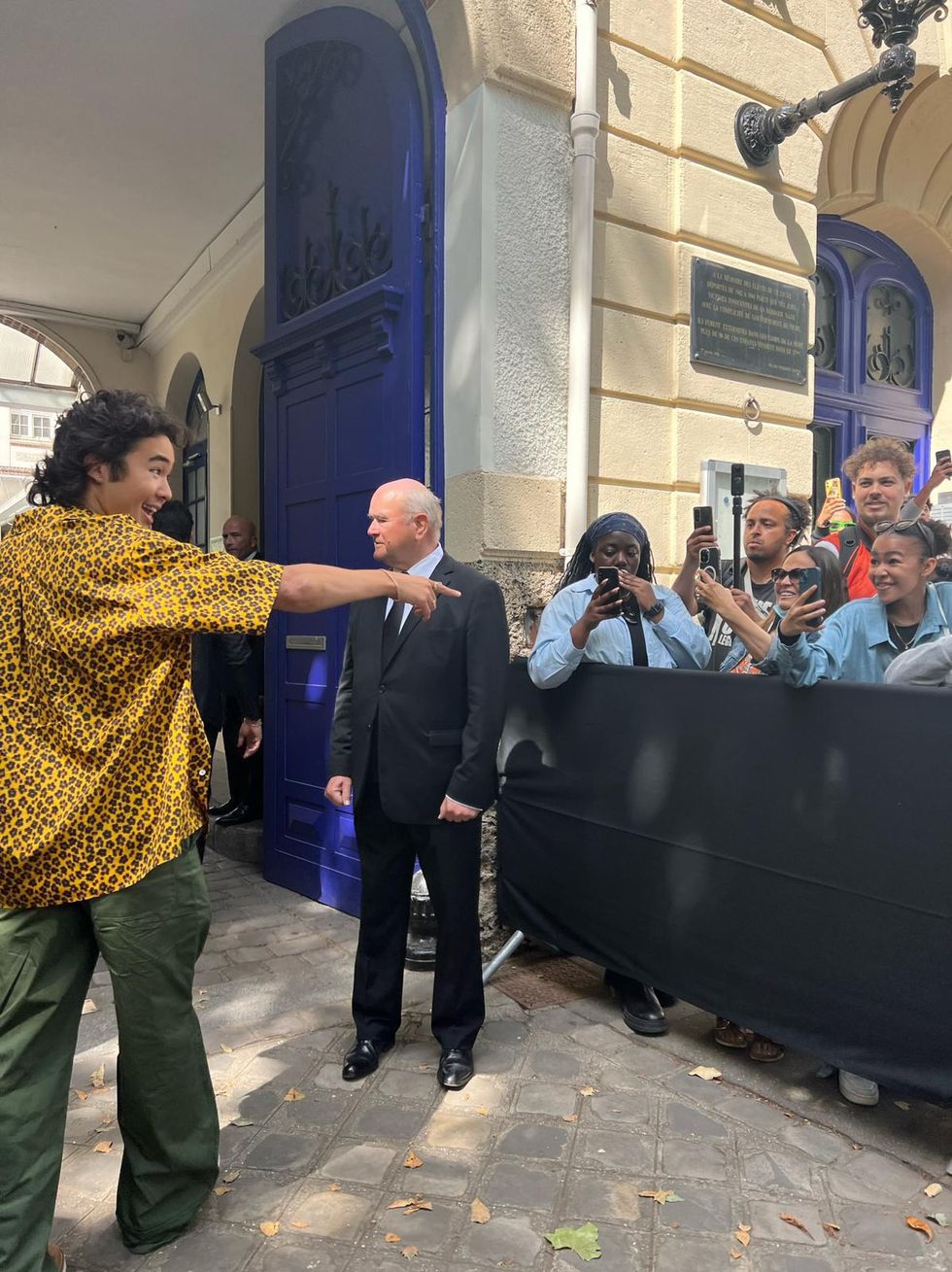 Hiraga and Kenzo both share Japanese heritage — the 24-year-old is half-Japanese, and Kenzo, which was founded by its late namesake Japanese designer Kenzo Takada, is currently designed by Japanese creative director Nigo. For the big day, he was dressed in a yellow Kenzo floral shirt and army green pants with a tiger belt, and he took photos with fellow showgoers Omar Apollo and Jaden Smith.