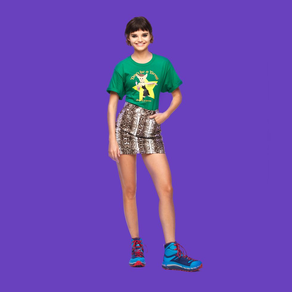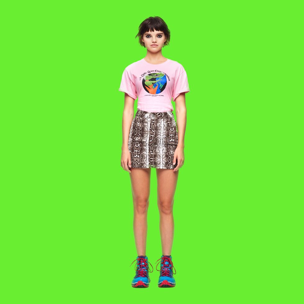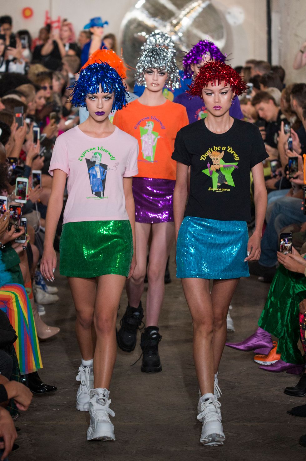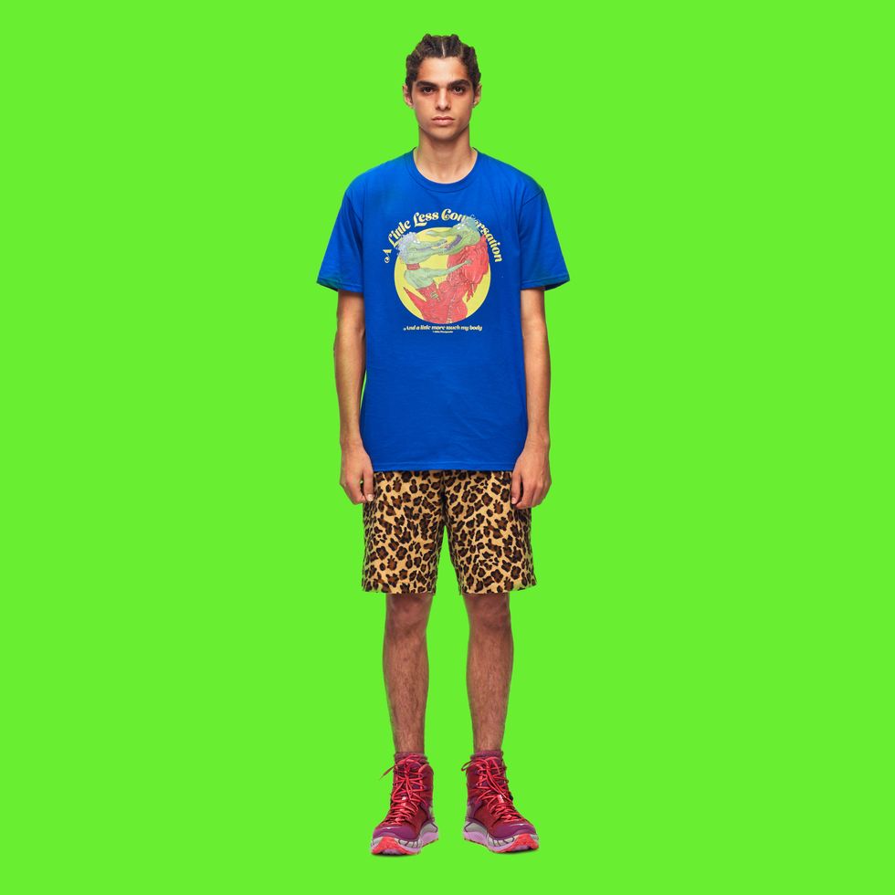 Nicopanda kicked off London Fashion Week today, delivering a cowboy-filled, neon-drenched rave spectacular for its spring 2019 collection. Amidst the silver streamer wigs, "R.I.P Disco" merch and tutu-stretched sashes, Nicola Formichetti's streetwear brand also introduced a new capsule of tees with New York-based artist Hilton Dresden, which can be purchased today on Amazon Prime.