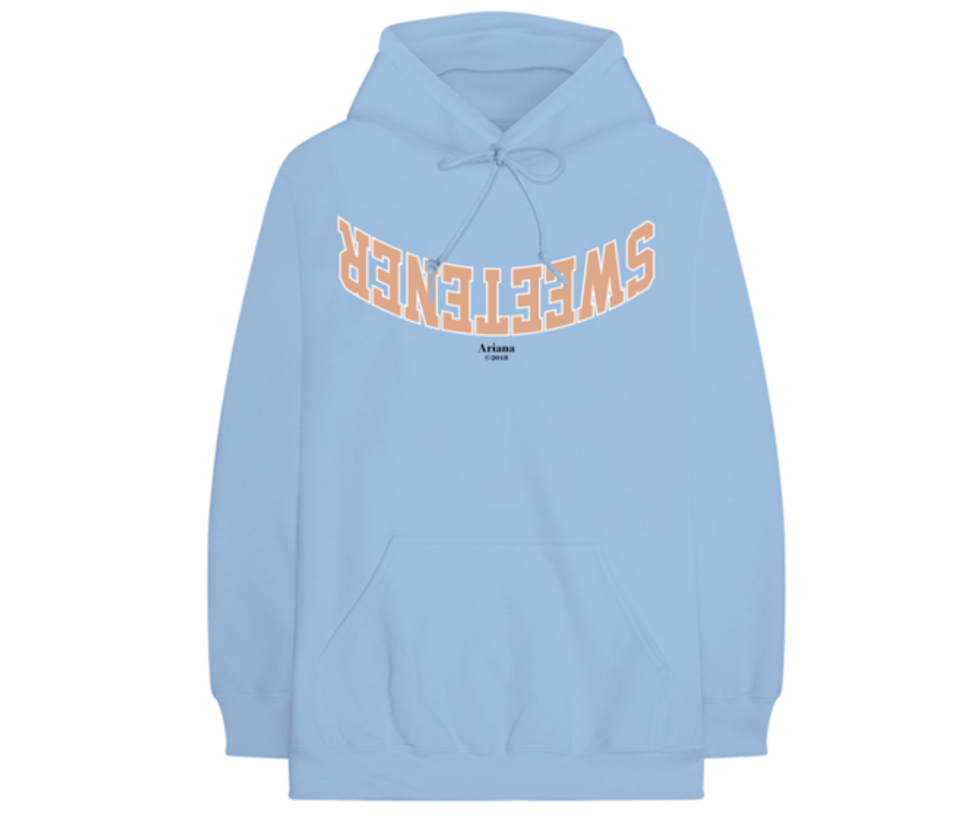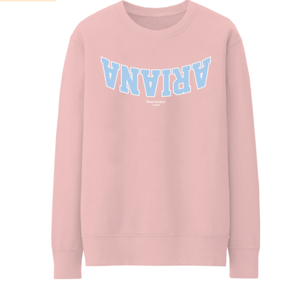 Grande announced today the limited edition merch line in celebration of the her recently released album, teaming up with Nicola Formichetti's Nicopanda brand to create the micro-capsule collection. The two hoodies come in cotton-candy pink and baby blue colors featuring inverted text in an athletic font.