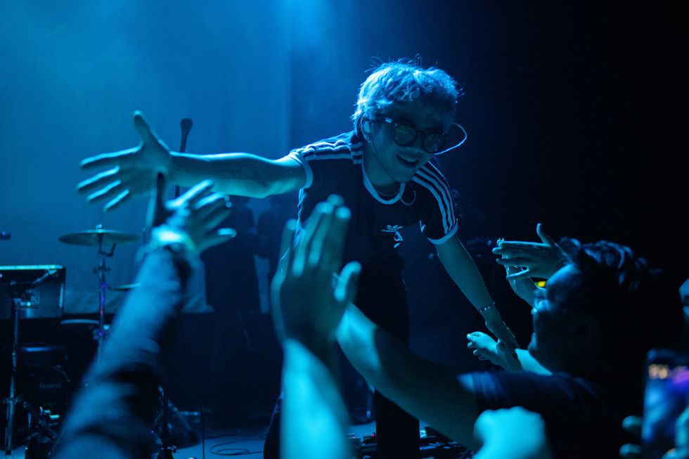 On his first headlining show at Rough Trade in Brooklyn, New York, No Rome commanded the stage with confidence, ease, and a swagger in his voice and the way he moved that seemed unshakable. The room was just about packed, and he knew how to work the crowd, singing both his earlier popping bops and his latest electric ballads. There were declarations of love from fans, a prom-posal, and even a welcomed stage crasher who wanted to be Rome's Matty Healy (from The 1975, who is a good friend of the artist and once called him his "muse").