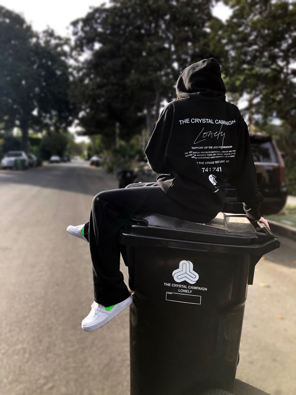 The crisis text line, '741741,' is also shared on the collection's website, to encourage those concerned about themselves or a friend to reach out for help.