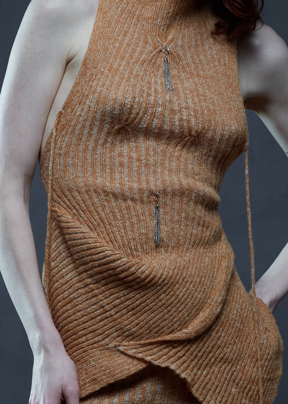 I love science-fiction and futuristic things and bringing that into my clothes is super interesting because the knitting is quite soft. Knitting is turning a corner in the global zeitgeist to be extremely sexy, chic, fun, experimental. And even when that trend passes, I'll still enjoy it. Continuing to just do things that I love informs my practice as an artist and then that carries into the work. Symmetry is an extremely big part of my practice. There's this balance and organic nature. People tell me that my brand has a viewpoint, but I couldn’t see that because I'm doing a thousand things, going in a thousand different directions. So I can experiment and do what I want, since my design tenants and pillars will stay consistent. I want to make sure that I have a body of work that I’m able to talk about with the motifs and color combinations all playing into each other.