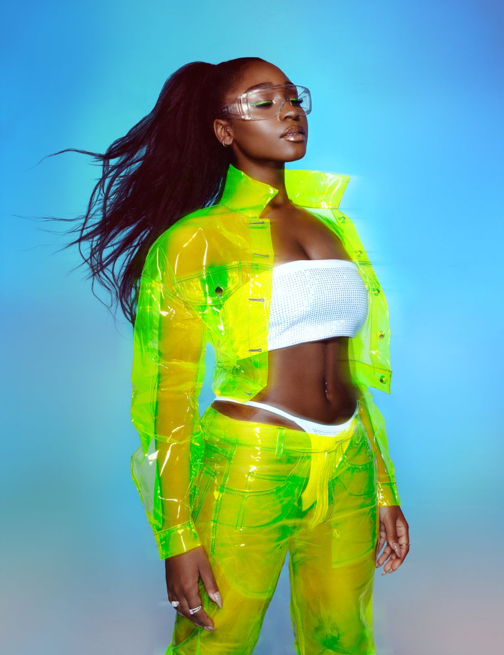 She's currently deep into recording sessions, teasing out her sound to put together what will be her debut album. If the sleek production of her collaborations with 6LACK ("Waves") and Calvin Harris ("Slow Down") are any indication, we may be in for at least a few more chart-topping hits. The sound of the album is equal parts "sultry, smooth, dominant, empowering and entertaining," she says, woven together with her favored R&B tones while also drawing her the wide range of influences — Destiny's Child, TLC, Norah Jones and Shania Twain all get a shoutout.