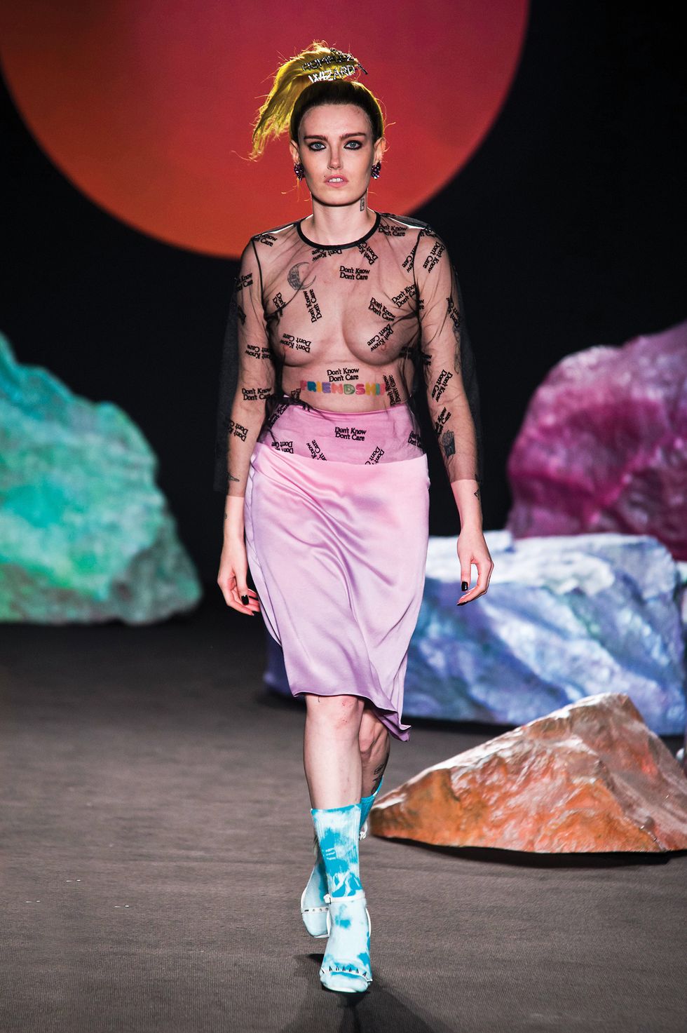 The '90s were also, of course, a fabulous time in American fashion with the runways of NYC ruled by Marc, Anna Sui, Isaac Mizrahi and Todd Oldham. Isaac loved jewel tones and sparkle, often paying homage to fashion king Norman Norrell. Anna, like Marc, was influenced by rock stars and vintage flea market fabulousness. Todd, from Texas, was a DIY crafty cutie who loved bright colors and paint-by-number style. The Spring 2019 runways were full of classic '90s NYC moments. Ruffled floral granny dresses. Clashing plaids tied at the waist. Hoodies with cartoon characters. It's like the models walked right out of a time machine and onto the runway.