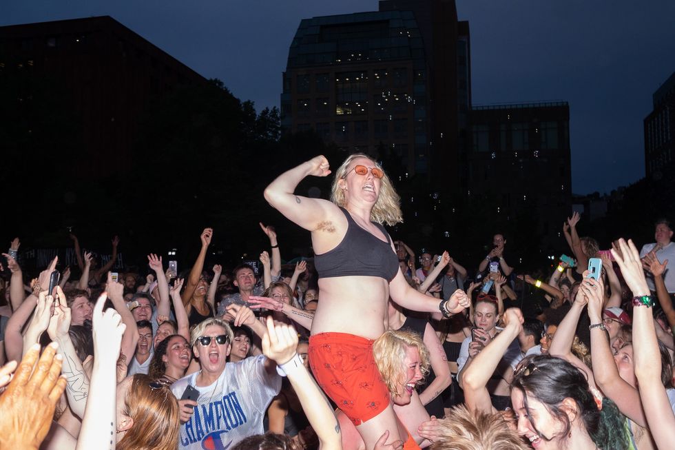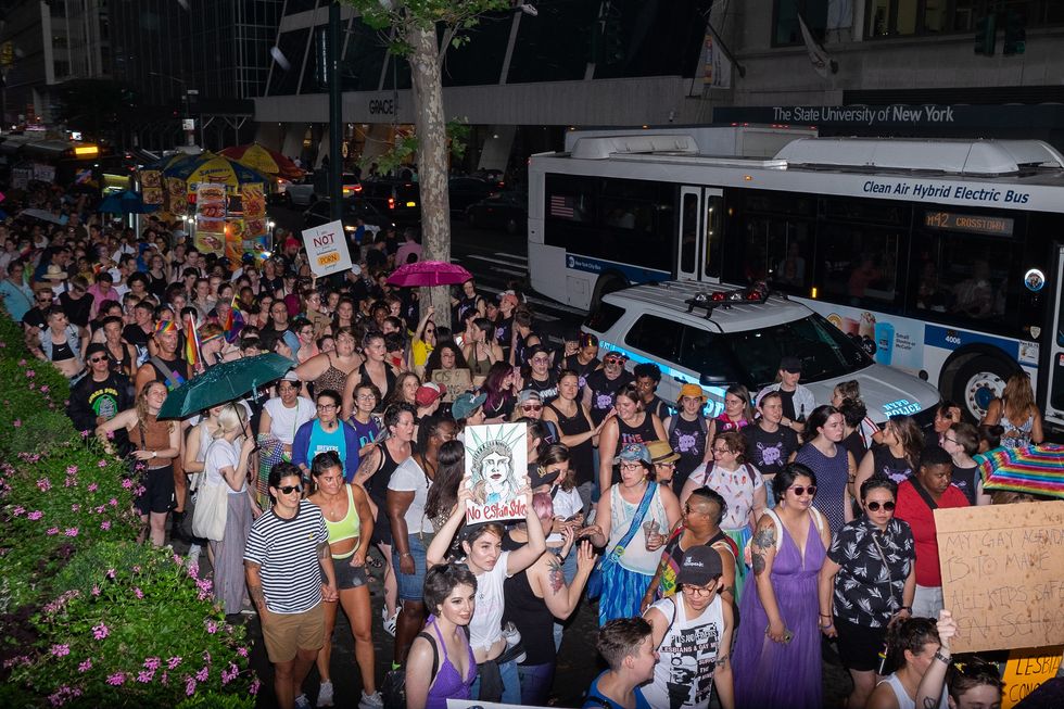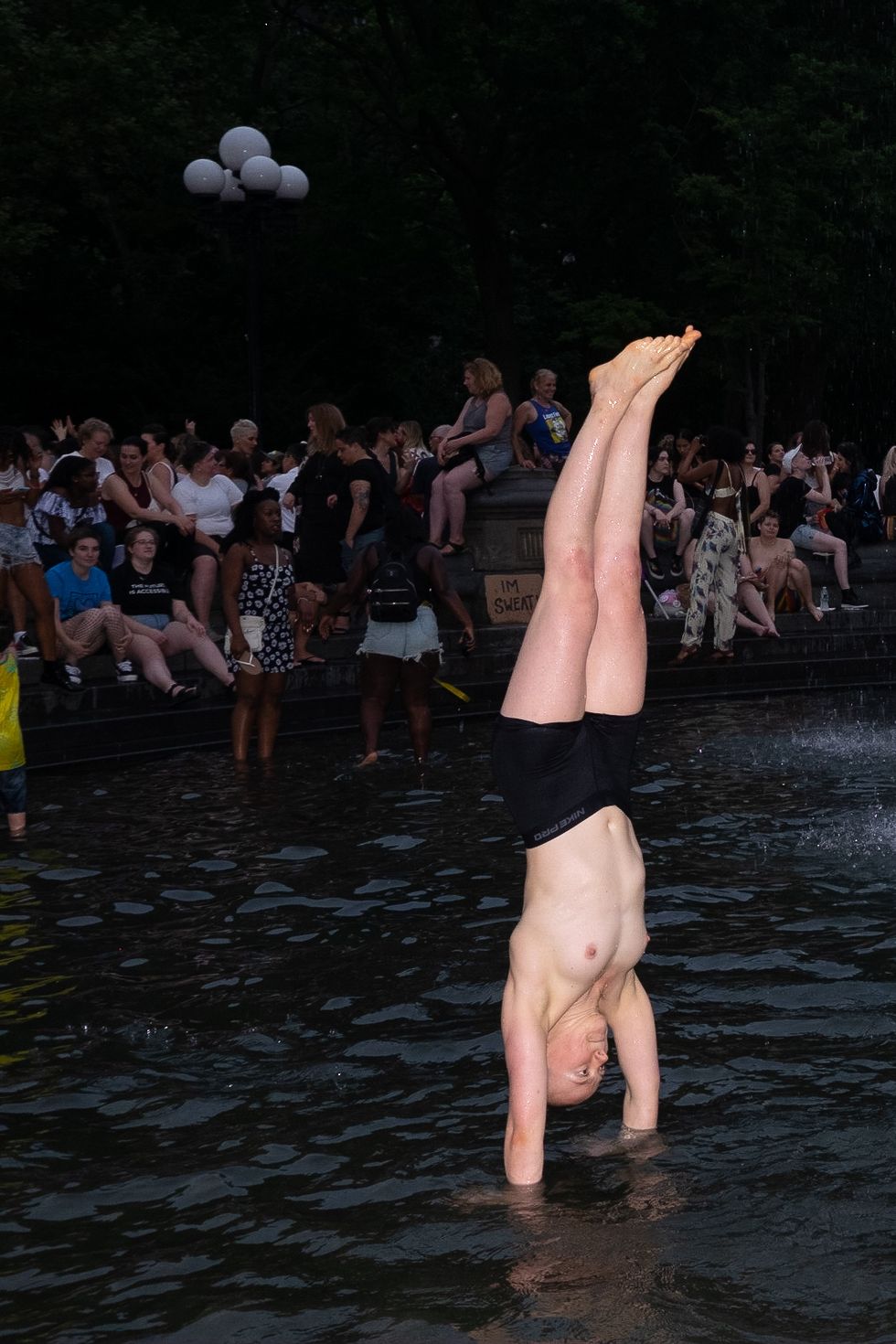 When the masses arrived at Washington Square Park, the protest turned into a celebration. While "Girls Just Wanna Have Fun" echoed through the park, people danced, frolicked in the fountain, embraced one another, laughed with each other, and kissed with joy. The sun set that day upon a gathering of strong, powerful people who had been heard, seen, and truly left their mark on Pride Month 2019.