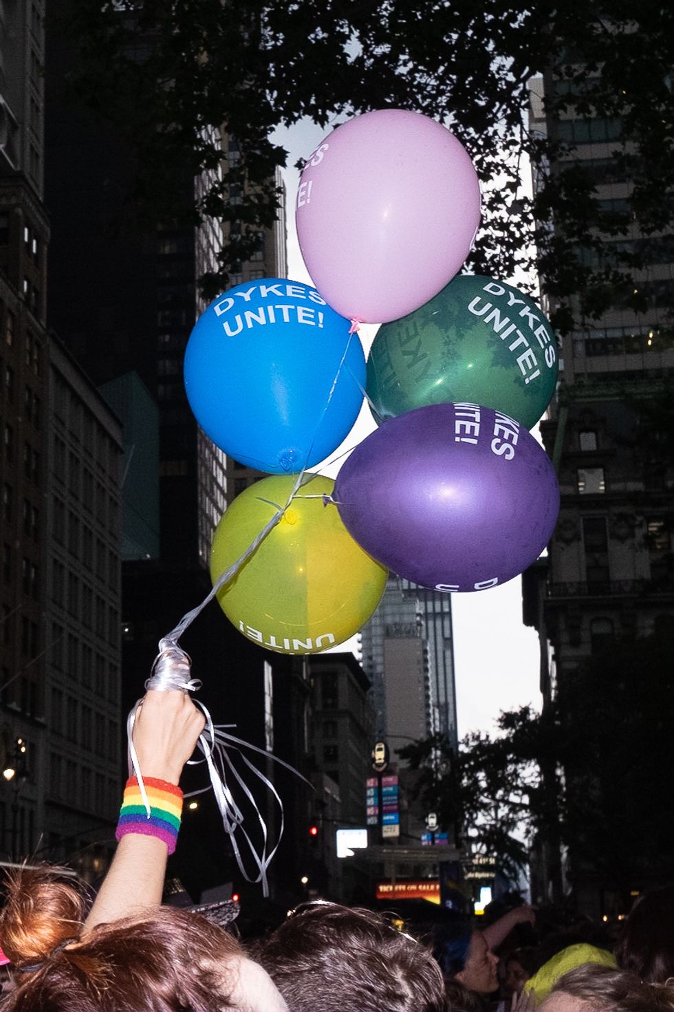 It's within this framework of resistance that the New York City Dyke March fits in. "This is a protest march, not a parade," the annual event's official site declares. On Saturday, June 29, thousands of self-identified "Dykes" of all backgrounds gathered at Bryant Park. As rain began to fall, spirits were only reinvigorated as the march down 5th Avenue to Washington Square Park started. Volunteer marshals blocked off streets forming hand holding daisy-chains, creating a metaphorical and literal safe space for the marchers. There was chanting, there was screaming and there were drums banging. The Dykes made their presence known, claiming space in a society that often tries to shut them out.