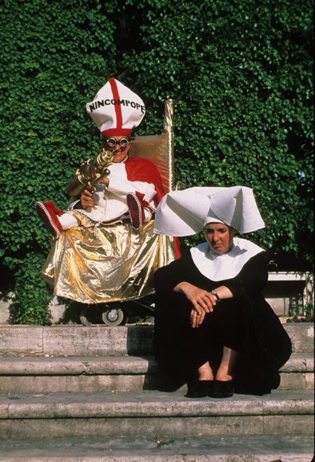 Pat Oleszko is the kind of gleefully bonkers original that is now vanishingly rare to encounter in New York. The performer and artist, who stands 6’2”, assumes every inch of her grand height by creating work that’s jarringly, fabulously outsized. Her primary subject — like basically every artist’s — is about bodies in space, but Oleszko approaches her art theatrically rather than theoretically. She treats boobs, butts, legs, and vaginas, as props rather than concepts, vehicles for making her audience laugh, stammer, squirm and think. The figure she cuts is striking, and her excursions into the wider world have the same vibe of freaking out the neighborhood as old RuPaul clips or talk show footage of the club kids. She was once arrested for marching with a pope impersonator through the Vatican (title: “The Nincompope”) and she recently hijacked the Staten Island Ferry with a bevy of young performance artists for a climate-themed Pride parade. If she’s been relatively overlooked by the art world, it’s likely because her swaggering, burlesque approach doesn’t fit neatly under the wider umbrellas of “feminist” or “performance art.” She probably has much more in common with consummate freak entertainers like Leigh Bowery or Grace Jones than institutional darlings like Judy Chicago or Marina Abramović.