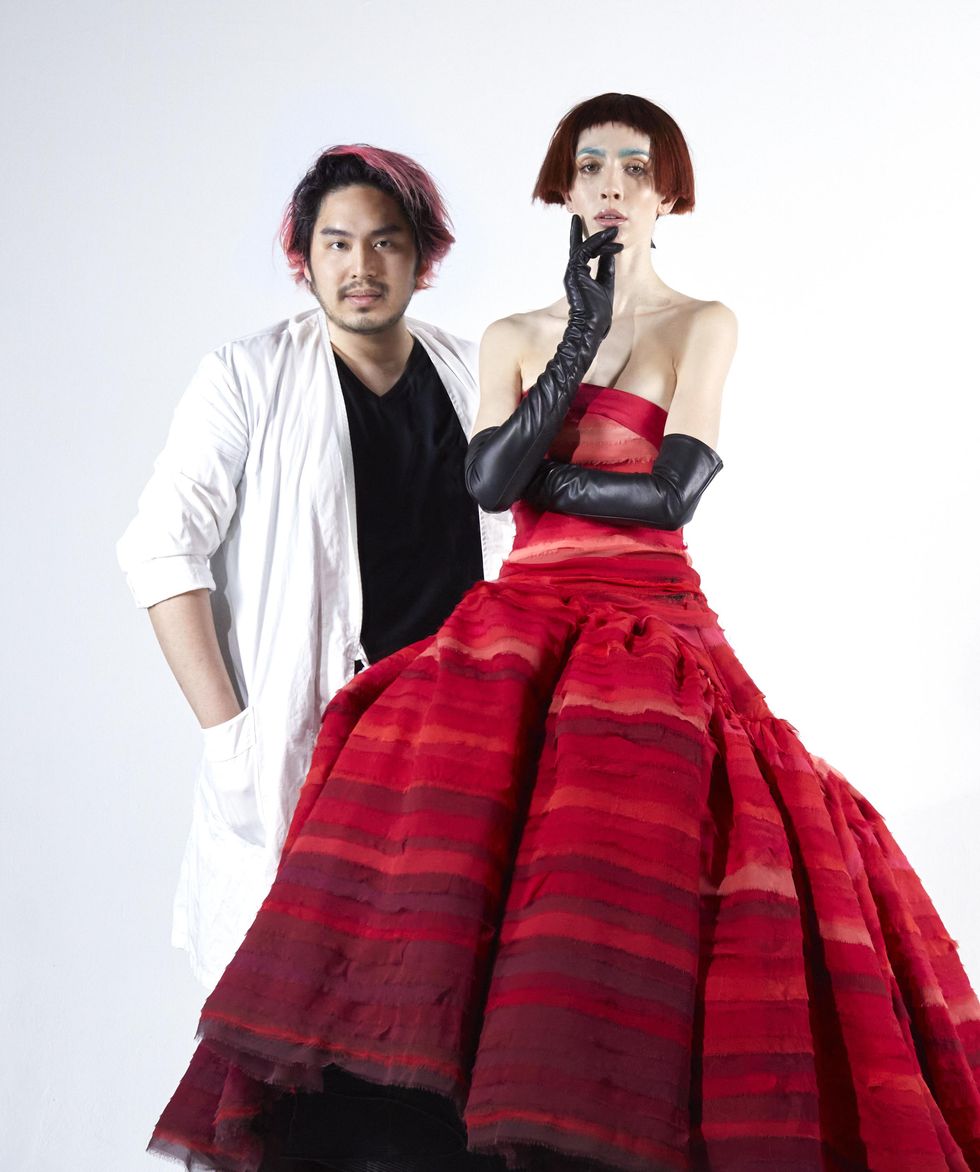 But for his first Fashion Week outing, Mai unleashed an explosion of soft pastels and gradient tiers of color, a departure from his initial collection of mostly black pieces. Vogue dubbed him an "American Couturier in the Making" and it's not hard to see why: shown on mannequins at the Times Center, his techniques included a panné velvet made from clear lurex woven onto silk with ombrés as well as a mille-feuille of raw-edged chiffon strips. Teddy Quinlivan, whom he's known for years, modeled the lookbook for this sophomore effort.