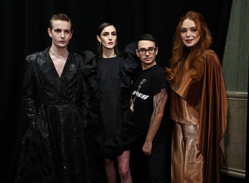 As a good big older sister does, Lindsay Lohan flew into NYC from Dubai to support her model siblings walking in the show. Lohan cheered them on in the front row of Christian Siriano's Fall 2023 “Welcome to Audrey Hepburn’s Rose Garden at Midnight” themed show. This made for a pleasant surprise from Lohan who hasn’t attended a fashion show since 2019.