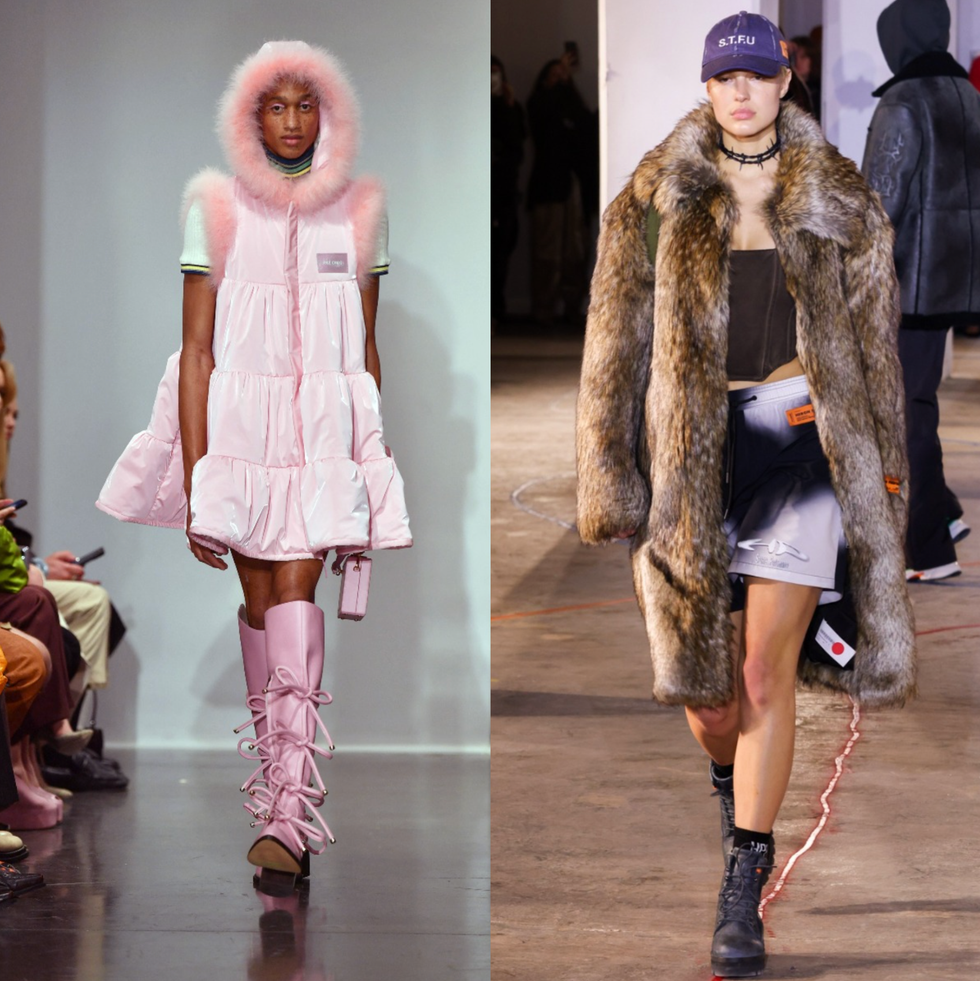 There may have been several pink elephants missing from the schedule this season, but the addition of Palomo Spain and Heron Preston was notable in that it indicated a return to New York for beloved brands that usually show elsewhere (Palomo in, well, Spain, and Heron Preston in Paris). Alejandro Gómez Palomo brought his signature queer exuberance and elevated it with pristine touches like sequined trousers and feathered knits for an intimate show with a live violin soundtrack. And Preston showed in NYC for the first time with an energetic show that featured like floor spray-painting, STFU logos, furry shoes and statement puffers.