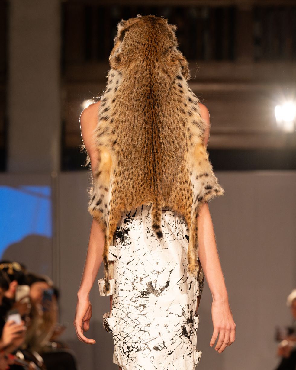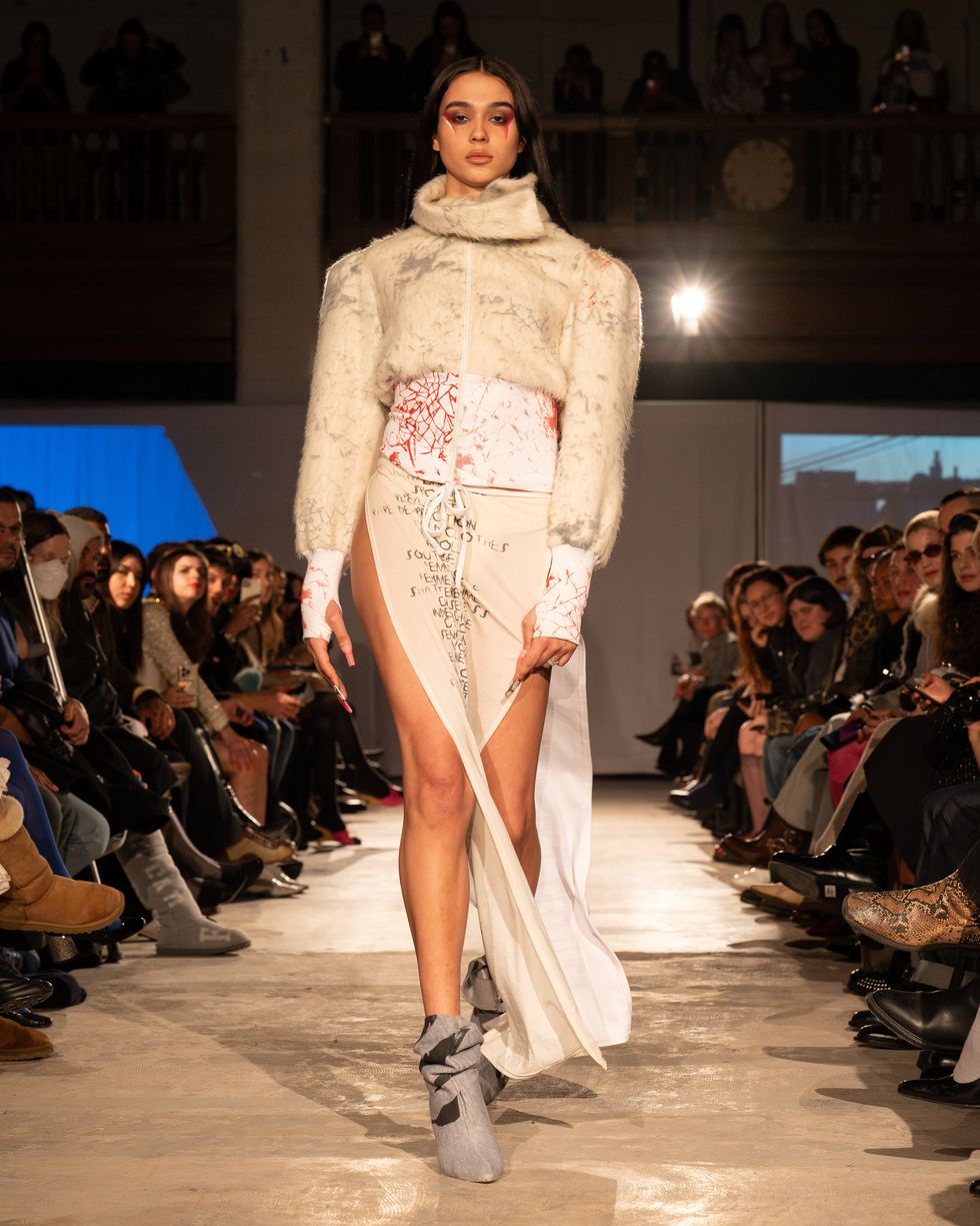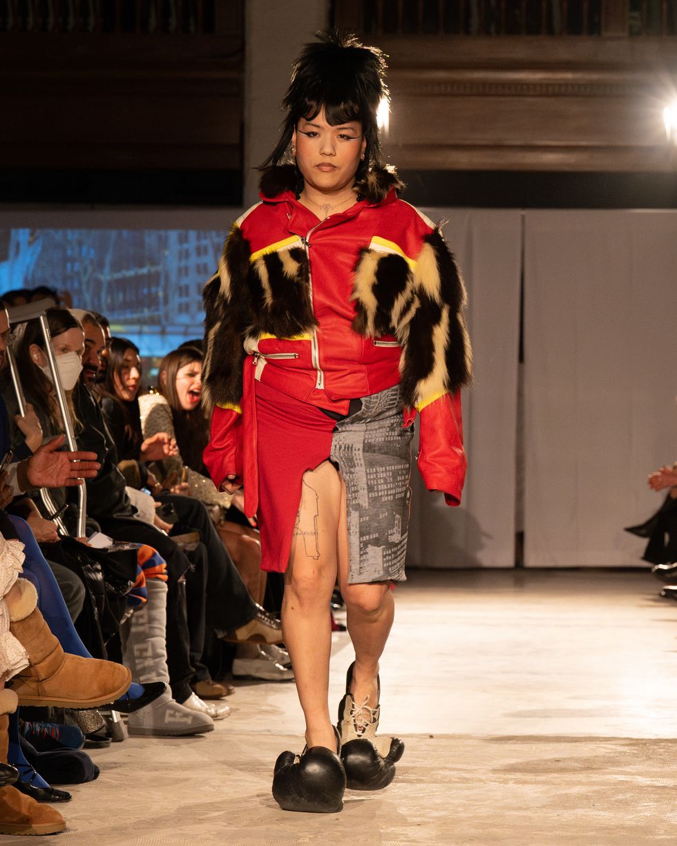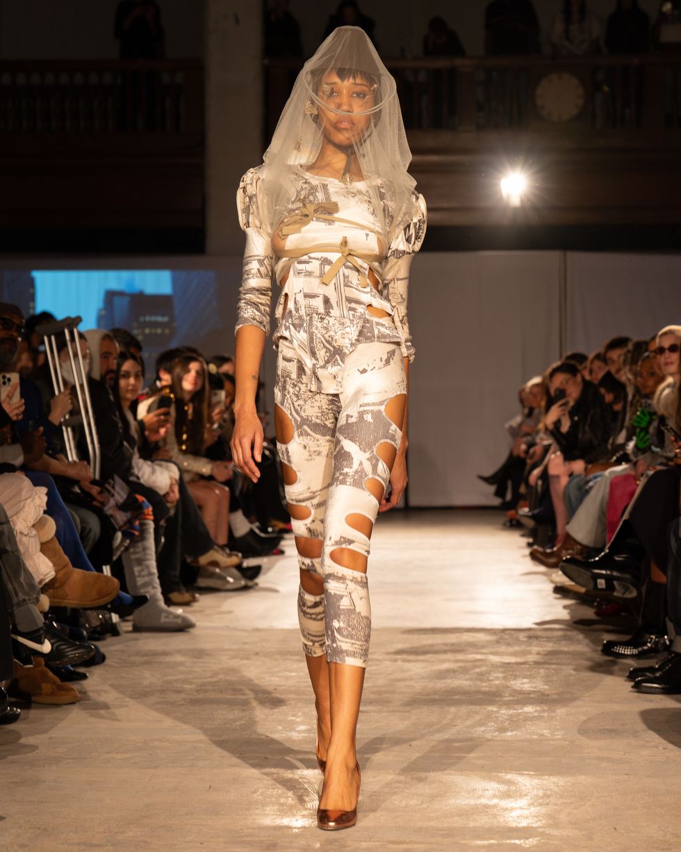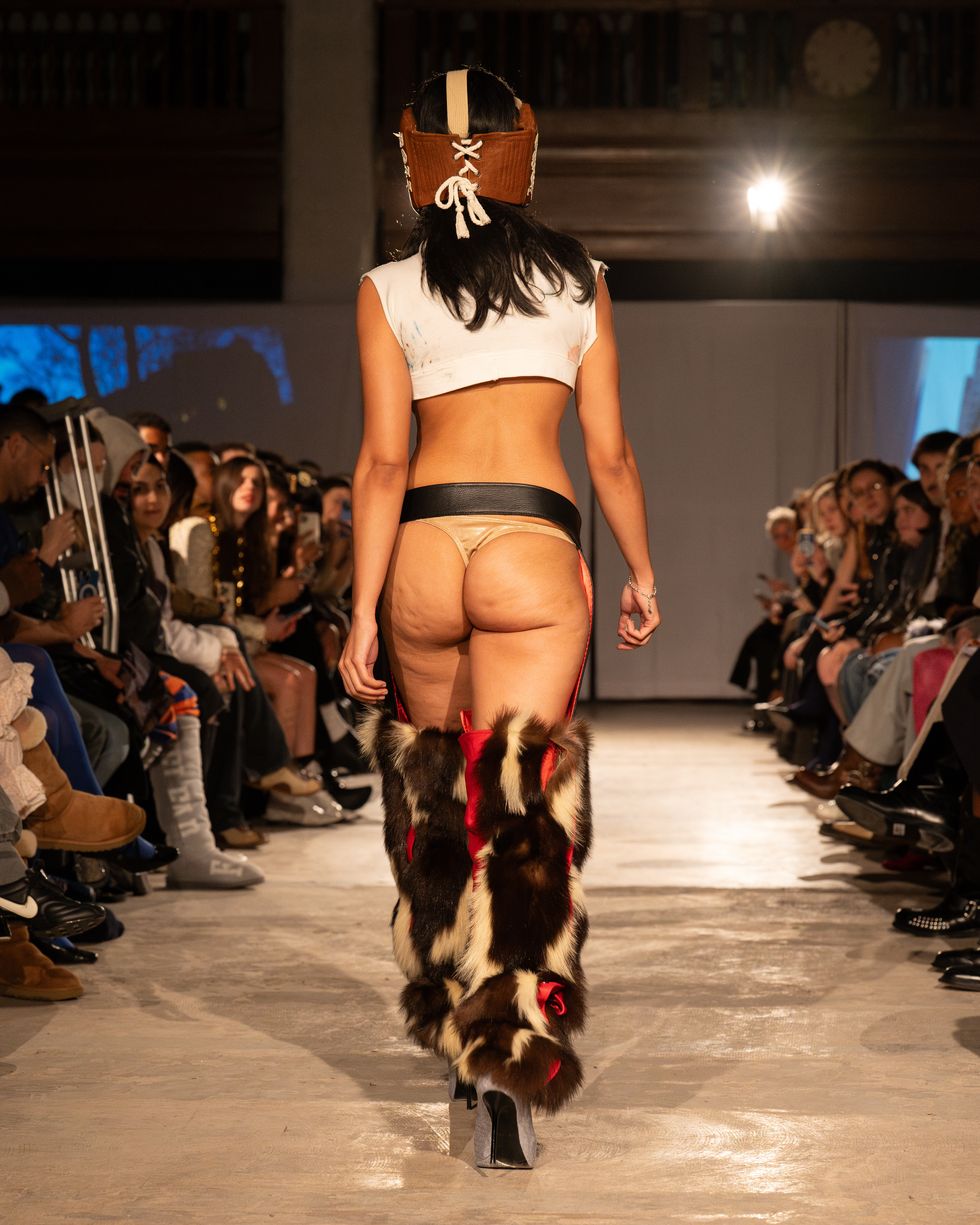 Their Fall 2024 show, entitled "Enfer" ("hell" in French), was a manifestation of this titular taste level. Held in a spotlit enclave across from the New York Stock Exchange, it featured some of the most interesting and exciting looks this season. Brand founders Mattie Barringer and Amanda McGowan made it a point to channel the animalistic instincts of being a New Yorker with models donning fur tails, Sasquatch-like stoicism and even live butterflies entrapped within white veils. Other notable touches included boxing glove boots and dresses imprinted with the Empire State Building — a commentary on the athleticism it takes to walk the streets of New York on a daily basis.