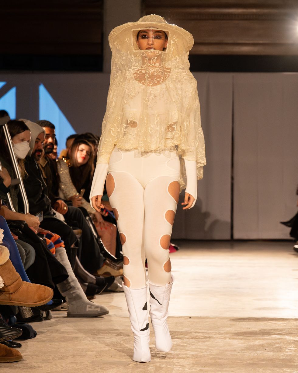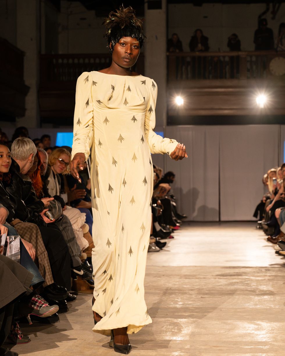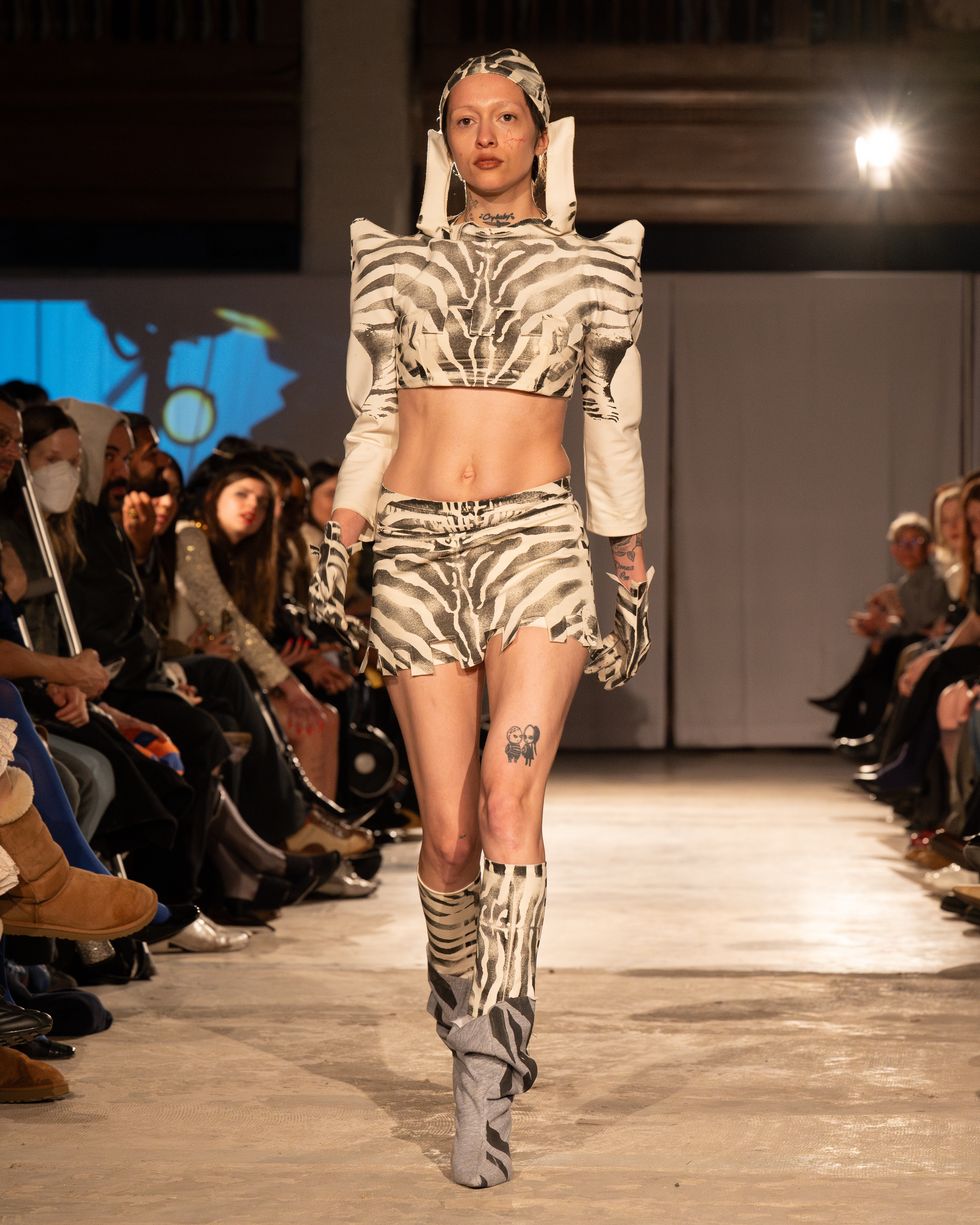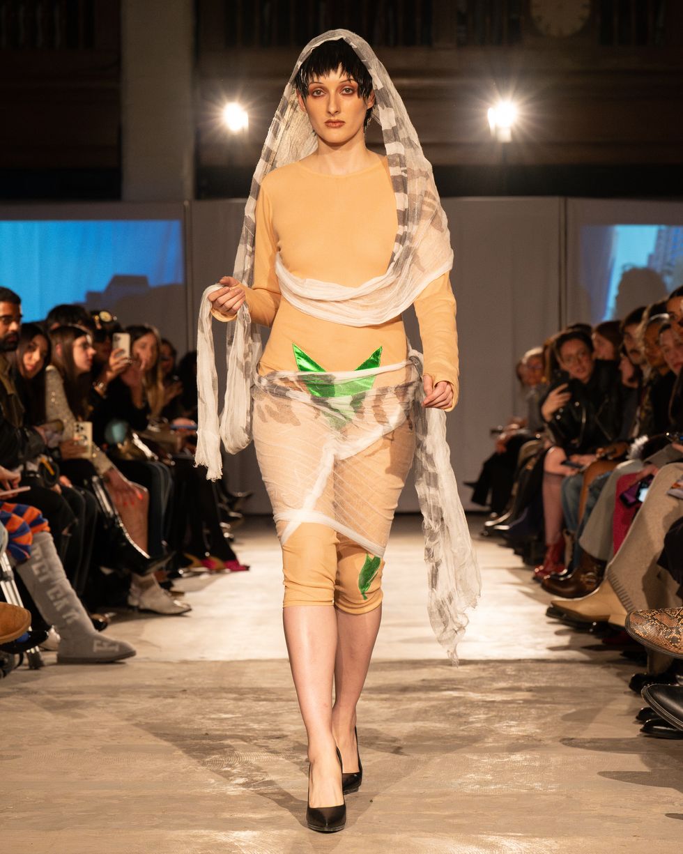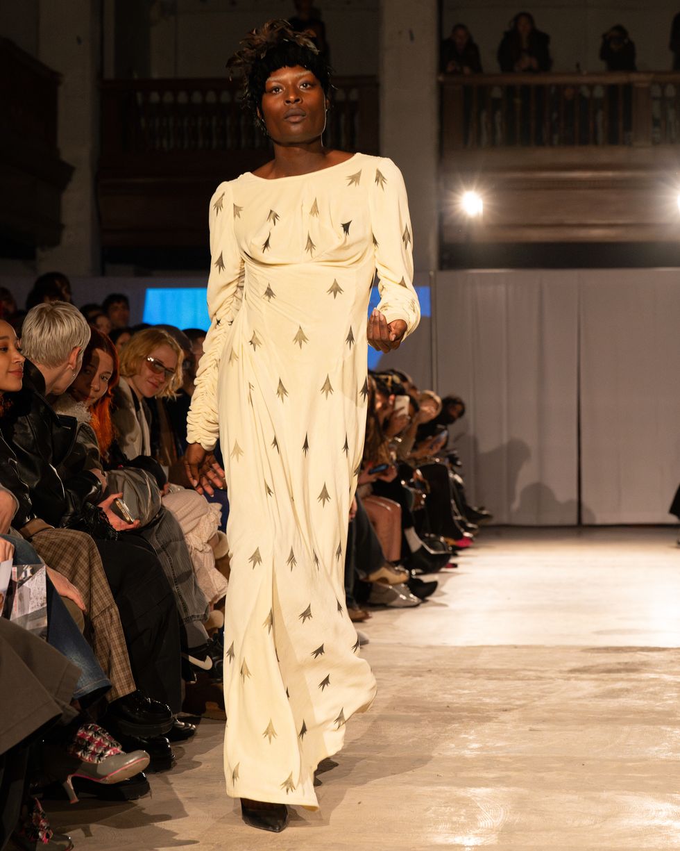 Their Fall 2024 show, entitled "Enfer" ("hell" in French), was a manifestation of this titular taste level. Held in a spotlit enclave across from the New York Stock Exchange, it featured some of the most interesting and exciting looks this season. Brand founders Mattie Barringer and Amanda McGowan made it a point to channel the animalistic instincts of being a New Yorker with models donning fur tails, Sasquatch-like stoicism and even live butterflies entrapped within white veils. Other notable touches included boxing glove boots and dresses imprinted with the Empire State Building — a commentary on the athleticism it takes to walk the streets of New York on a daily basis.