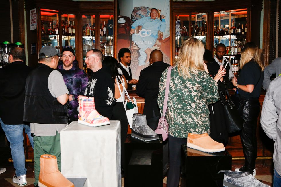 New York menswear label Ovadia celebrated its new collab with UGG at the Jane Hotel on the night before the official start of fashion week. Ovadia founders Shimon and Ariel held court as guests mingled and danced in the intimate space. The capsule consists of reimagined versions of UGG's Classic Mini boot and Tasman slippers rendered in new prints and subtle tweaks.