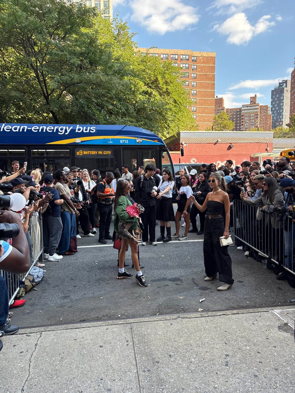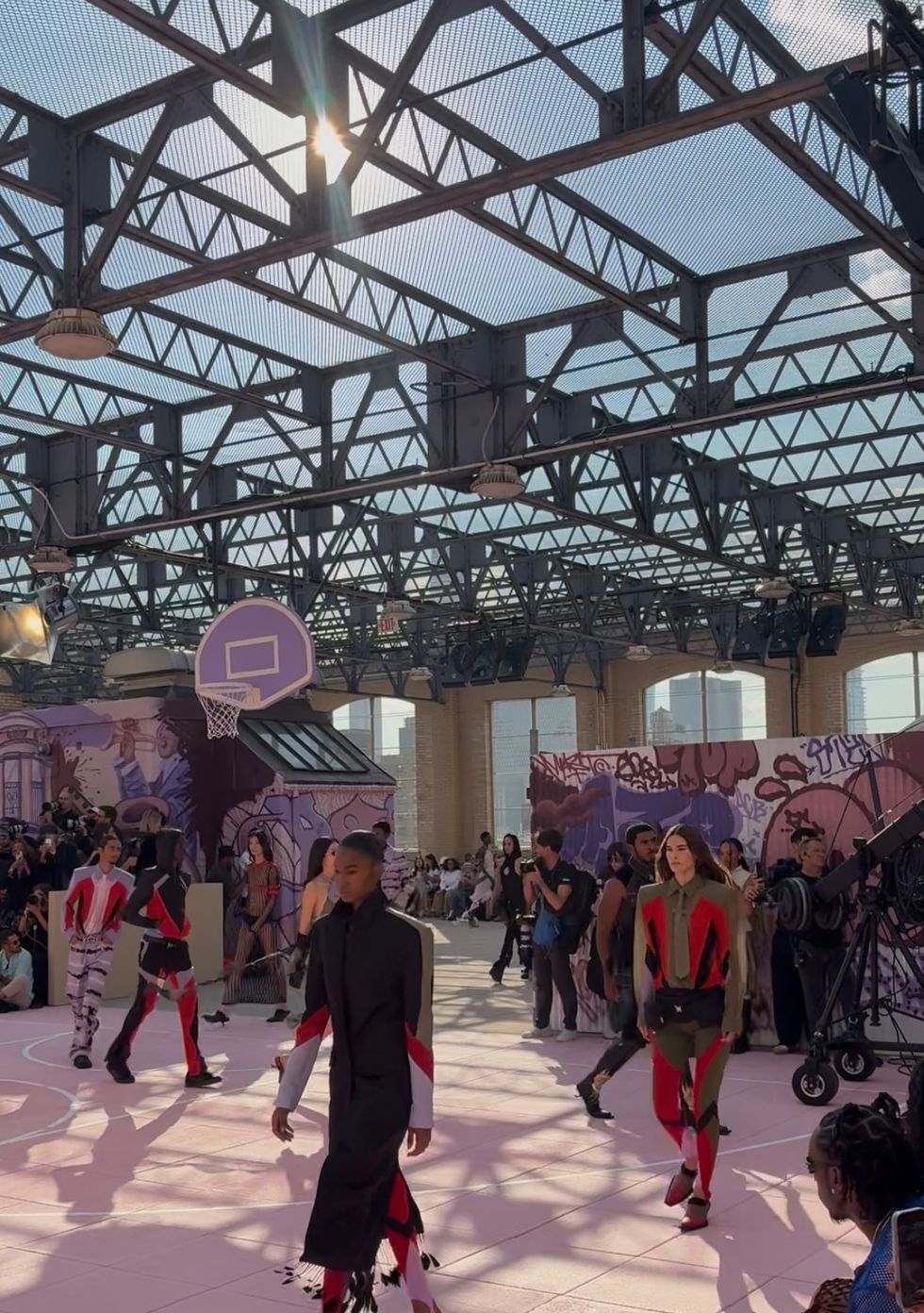 Last Friday, Off-White held its Spring 2026 runway show on the roof of the New Design High School in the Lower East Side. The collection centered the influence of Black culture in shaping the current pop cultural zeitgeist, from disco and hip-hop to graffiti, while collaborating with Swarovski and New York-based brand Brigade. "In reconnecting to the roots of black culture in the city, a leap forward happens putting romance where pop is," creative director Ib Kamara said in the show notes.