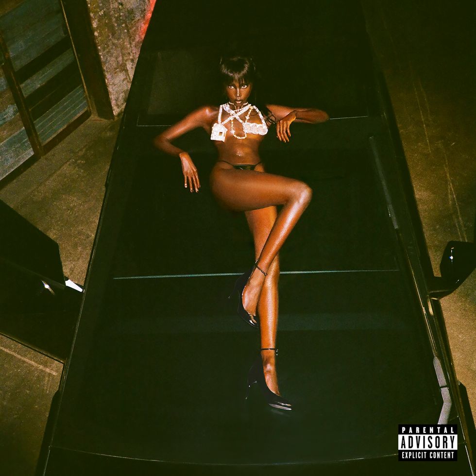In the album artwork, Yai is shown sprawled out on the hood of a black Cybertruck wearing Offset’s rap chains and little else. “Anok said she wanted to go there, so we went there!” stylist and art director SheShe Pendleton tells PAPER. “With her suggestion, we decided to go for nudity paired with an Alaïa heel and Offset’s famous jewels. That’s it, that’s the look. What better way than to pose on top of the cyber truck, highlighting Offset’s favorite lyric from ‘Swing My Way?’”