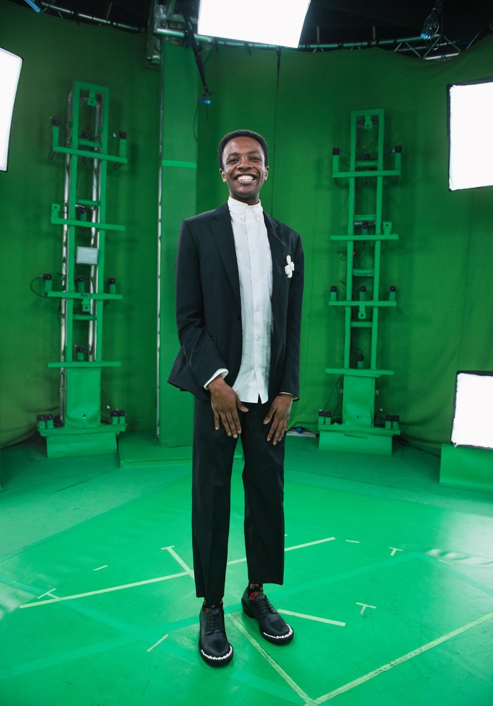 As this is Rocha's first time creating a full menswear collection, Douglas is particularly excited about some of her more ornate pieces. "The one I love the most has the pearls that line collar," he says. "I think she's been able to sort of embellish all of the menswear with a definite sense of femininity. I love that at the moment that a lot of menswear is being pushed by women. I just love that aesthetic. I love that there is a great sense of femininity in clothes."