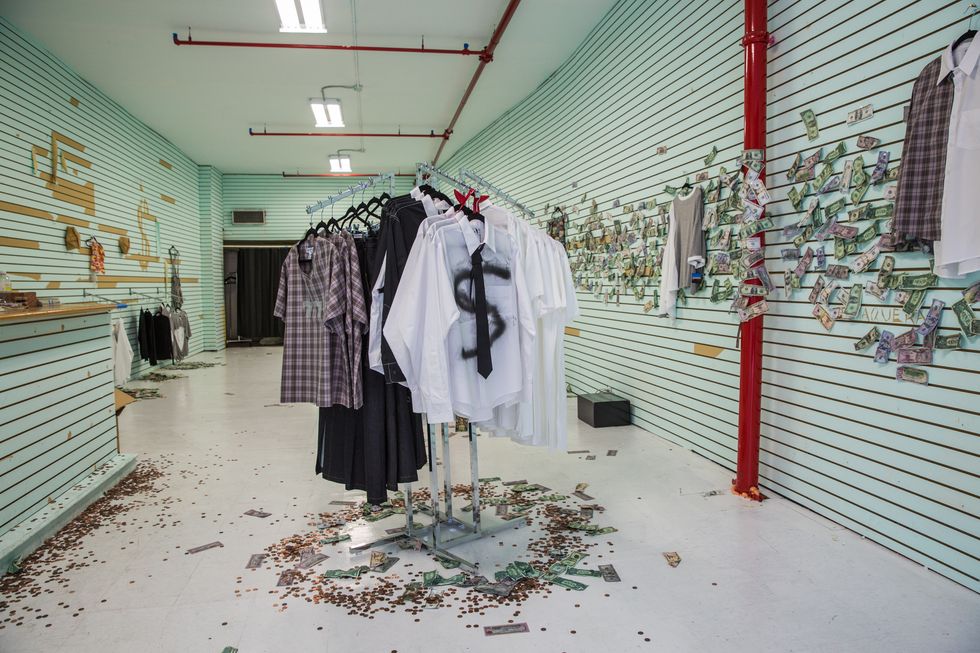 And the stores themselves aren't your standard retail experience: Vaquera, for one, created a "dollar store," with a floor covered in pennies, and Colm Dillane of KidSuper will also be addressing fashion's environmental impact — his space is covered in sewing machines, and visitors are encouraged to drop off unused clothing to be repurposed in the brand's next collection.