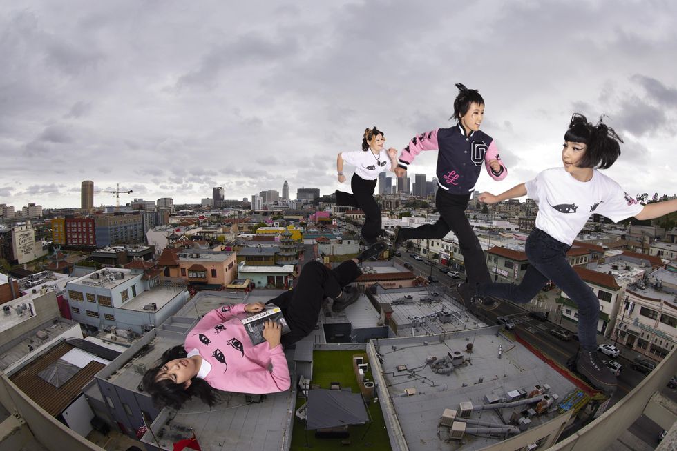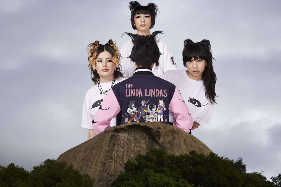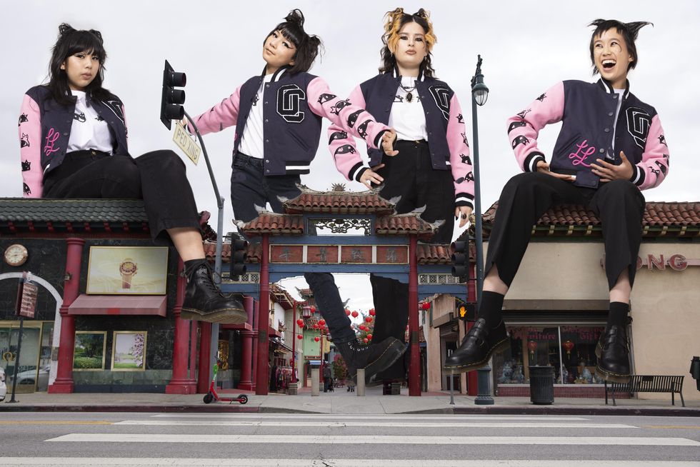 Leon and Lim have several projects planned this year to celebrate the milestone, and kicking off the festivities is a collaboration with the Linda Lindas, an all-female punk band based in LA. The collection of t-shirts, letterman jackets and sweatshirts features several of the girl group's motifs including the "kitty liner" eye, LL logo and cover art of their debut album Growing Up out April 8.