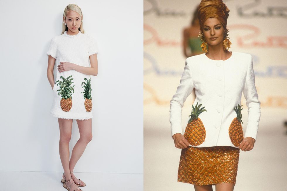 Left: Oscar de la Renta Pre-Fall 2021. (Photography: Cass Bird) Right: A look from Spring 1992. (Getty)