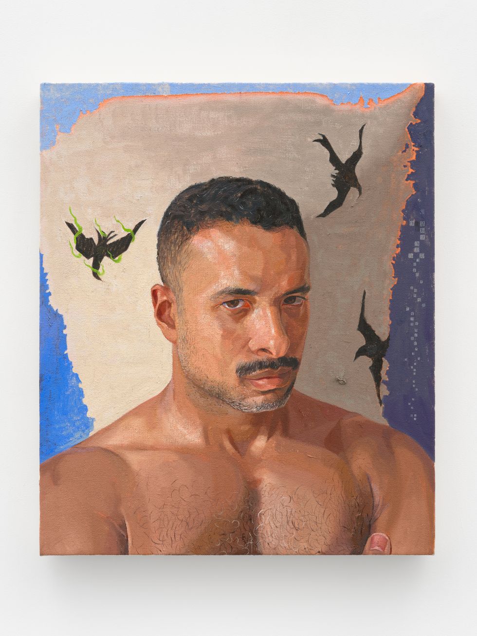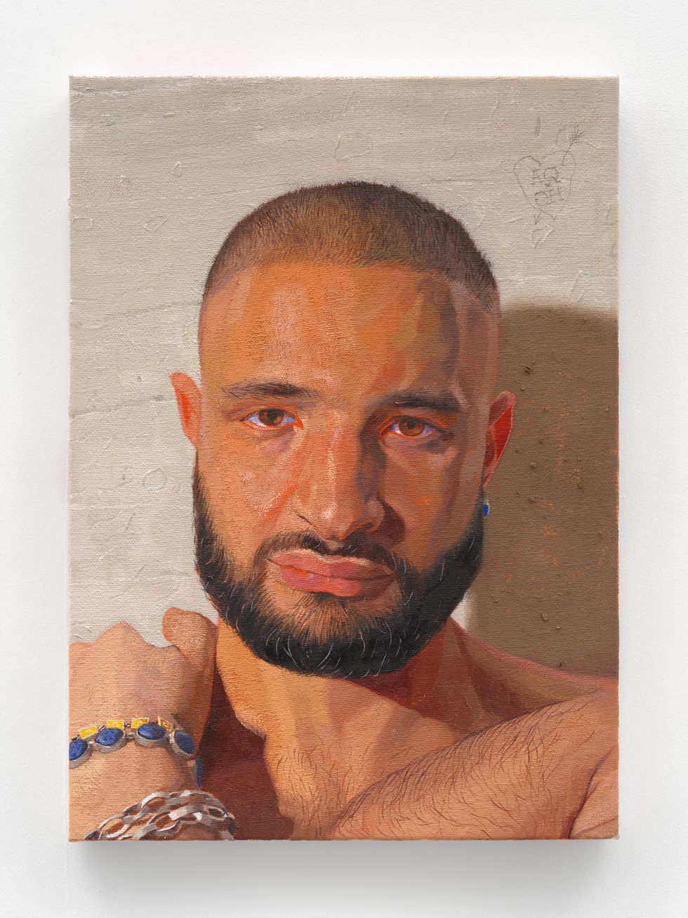 Ironically, he claims with a new self-portrait in process behind him on Zoom: “I care less and less about what I look like. In this one, I am wearing flip flops and gym shorts. I am literally just painting what I would normally wear.” Despite his modesty, his autoportraits increasingly convey a bullish quality, as well as a tension, shared with his other subjects, between hedonism and self-contemplation.