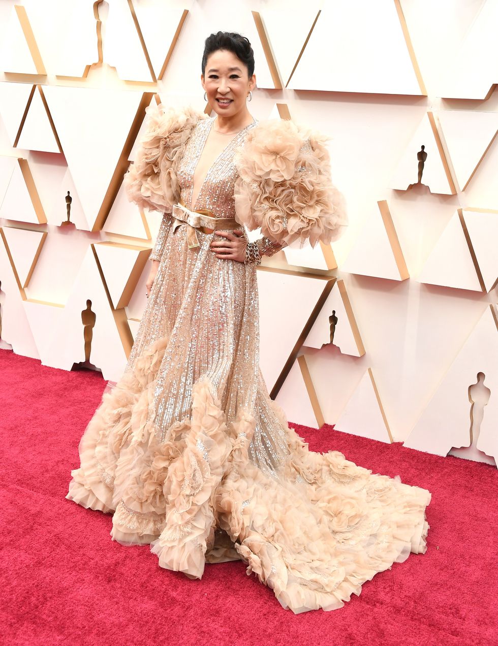 Attention must be paid to some other faves, including Sandra Oh in Elie Saab Haute Couture, Brie Larson in a custom Celine embellished gown and cape, and Natalie Portman, whose Dior Spring 2020 Haute Couture gown was embroidered with the names of overlooked female directors. "I wanted to recognize the women who were not recognized for their incredible work this year in my subtle way," she told the LA Times's Amy Kaufman on the carpet.
