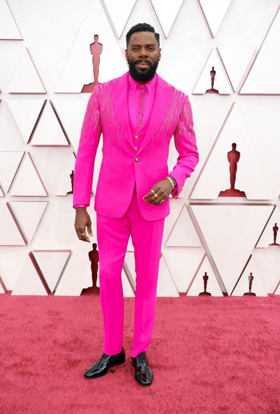 First things first, the men turned it out. In particular Colman Domingo in a custom fuchsia Versace suit. This outfit took close to 150 hours of embroidery, with the jacket alone dripping in 4500 Swarovski crystals and sequins. And then there was LaKeith Stanfield in custom Saint Laurent by Anthony Vaccarello. "Pulled up to the Oscars lookin' like your uncle, but since it's a dry bar, I'm going back home," Stanfield wrote on Instagram.