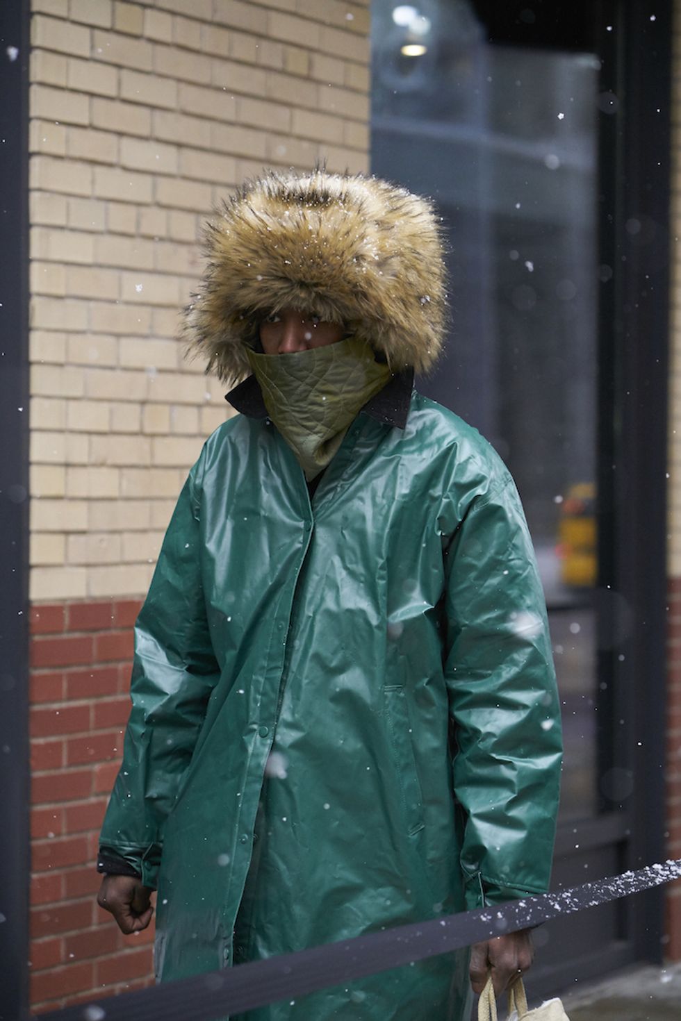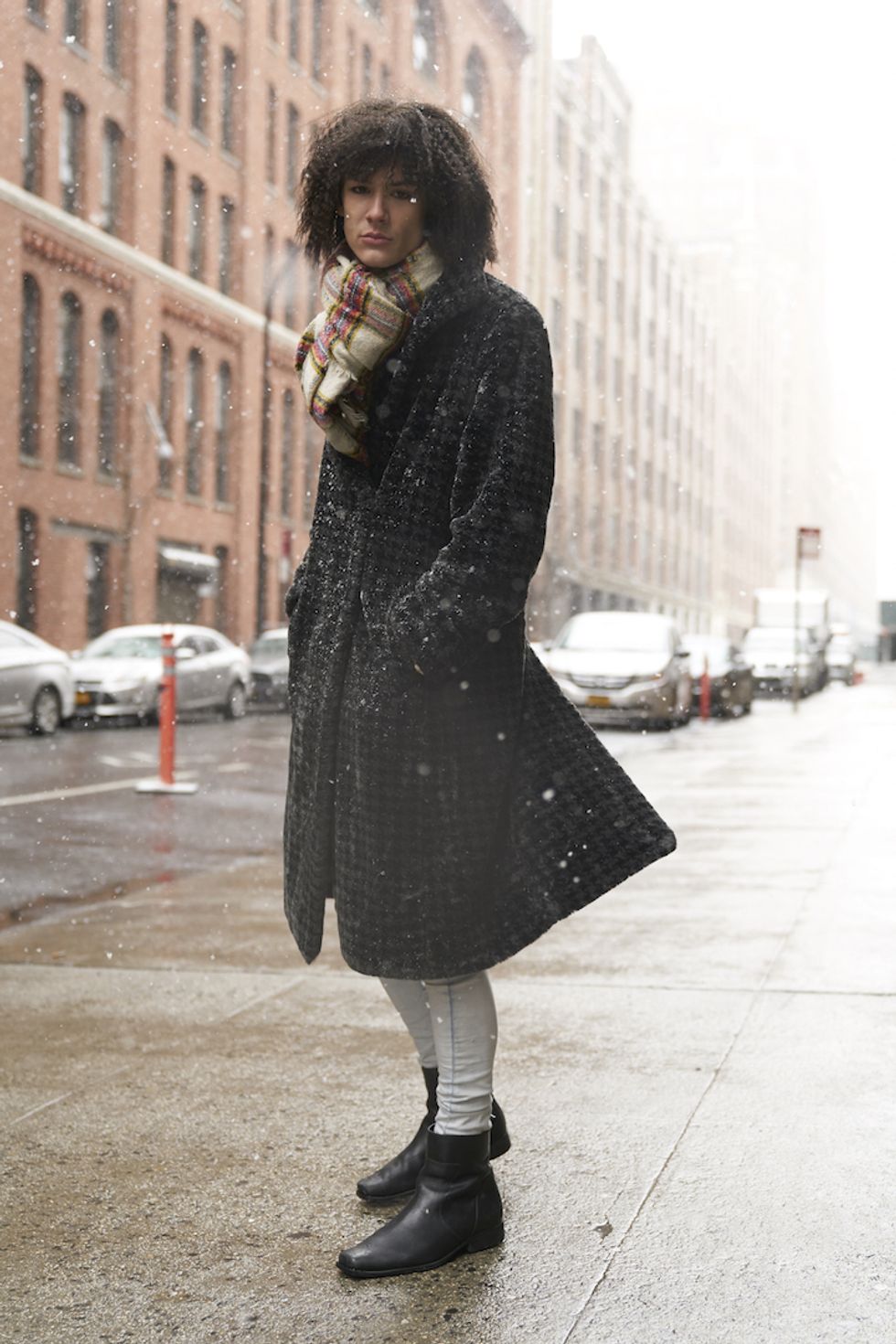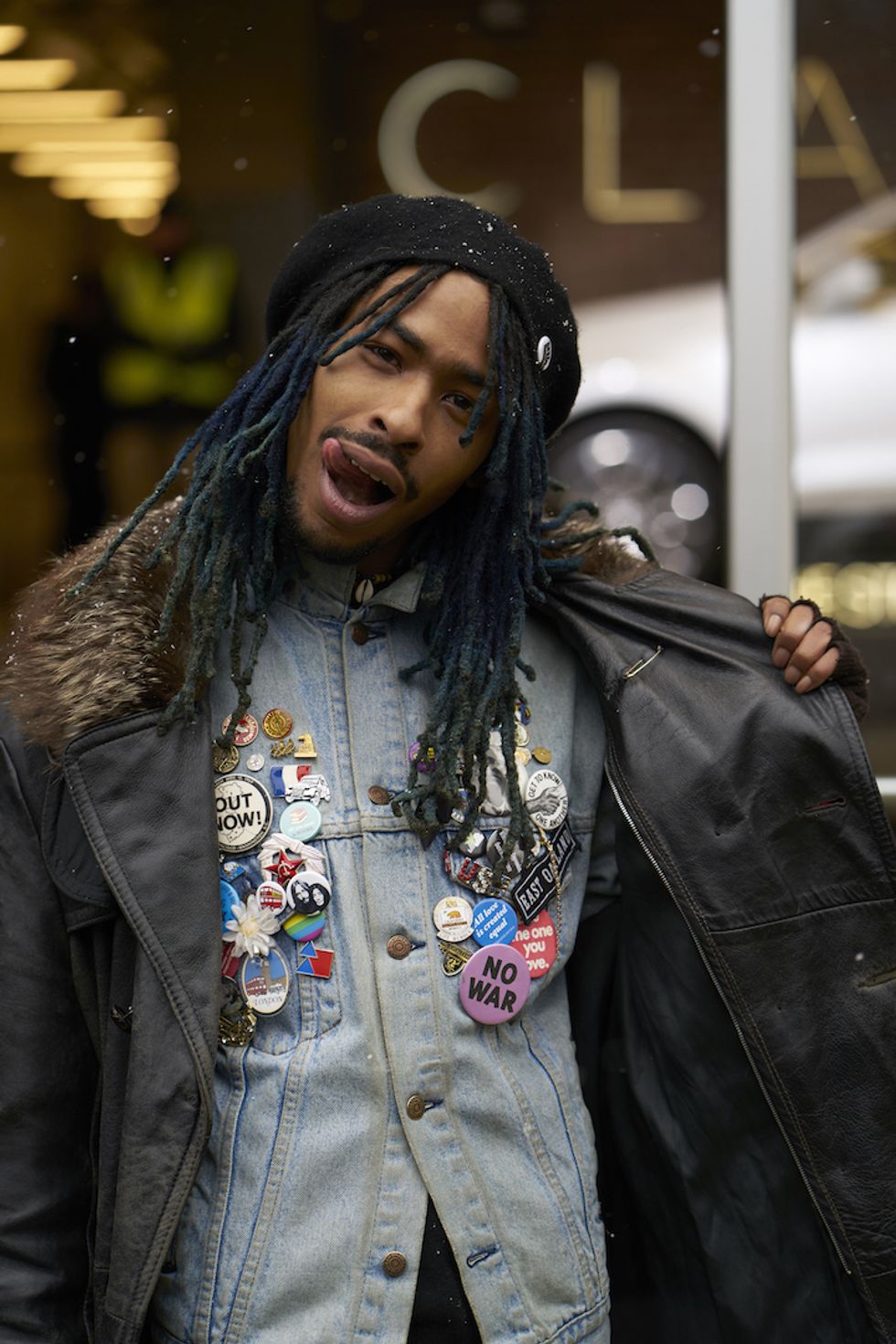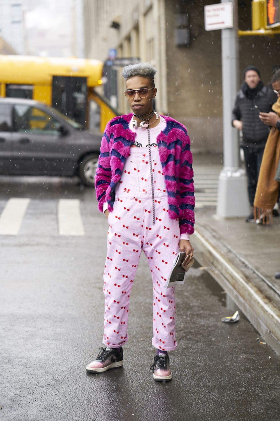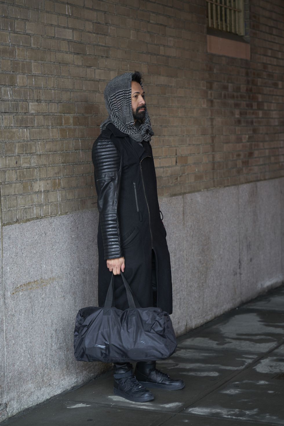 Men's Fashion Week came and went! It's a very special time of year in New York, when the genetically-blessed males of the species hit the streets en masse to flaunt their cheekbones, scowl handsomely, and test out whether or not their most outlandish hairstyles and accessories are "a thing." We braved the cold and snow to document these magnificent creatures in the wild, and divine the trends that the menswear vanguard will be rocking in 2017. We're seeing lots of faux fur, lots of real fur, western hats, head-to-toe monochrome looks, John Hughes movie realness, and in one instance, fishnet stockings.