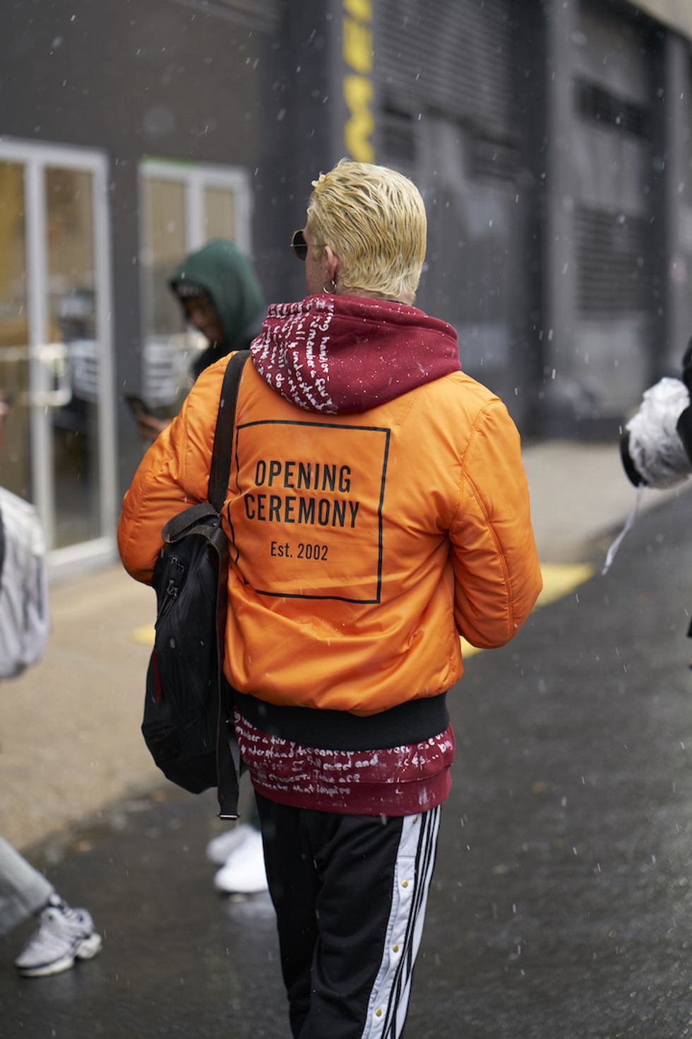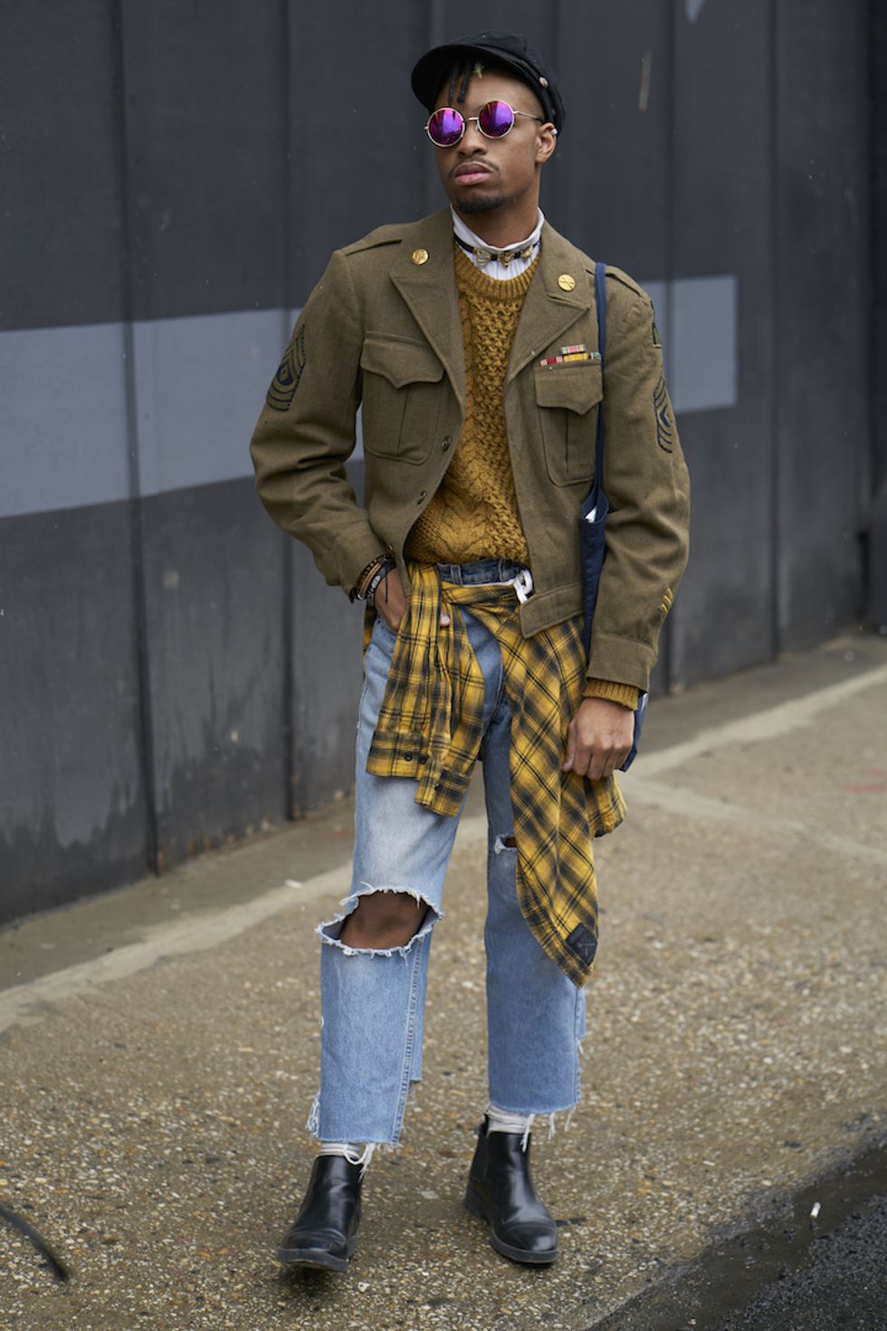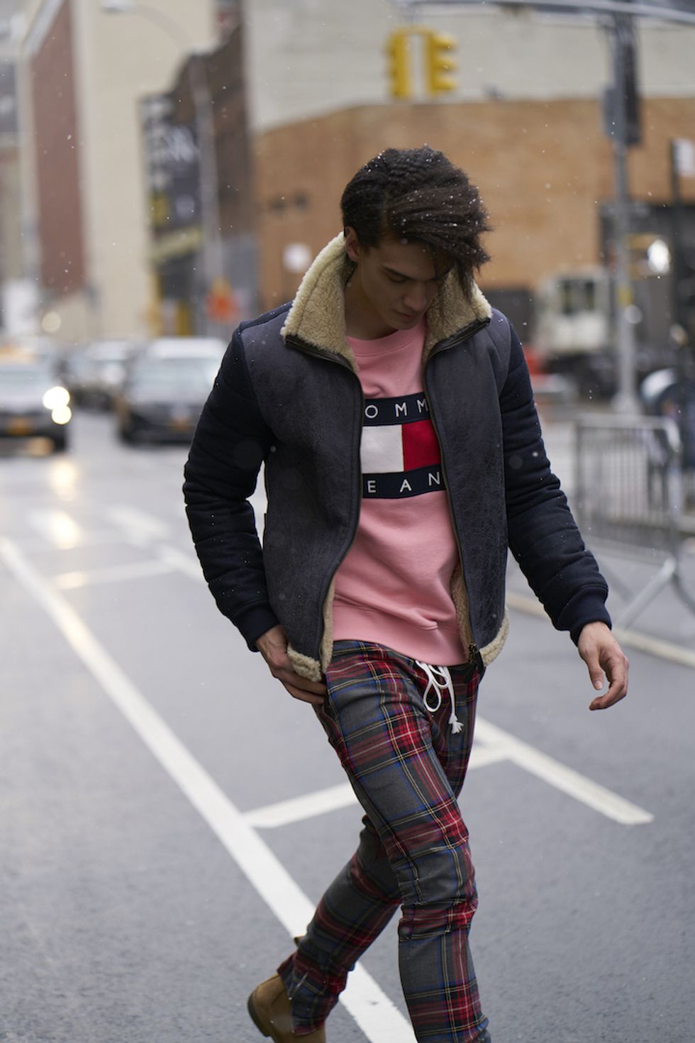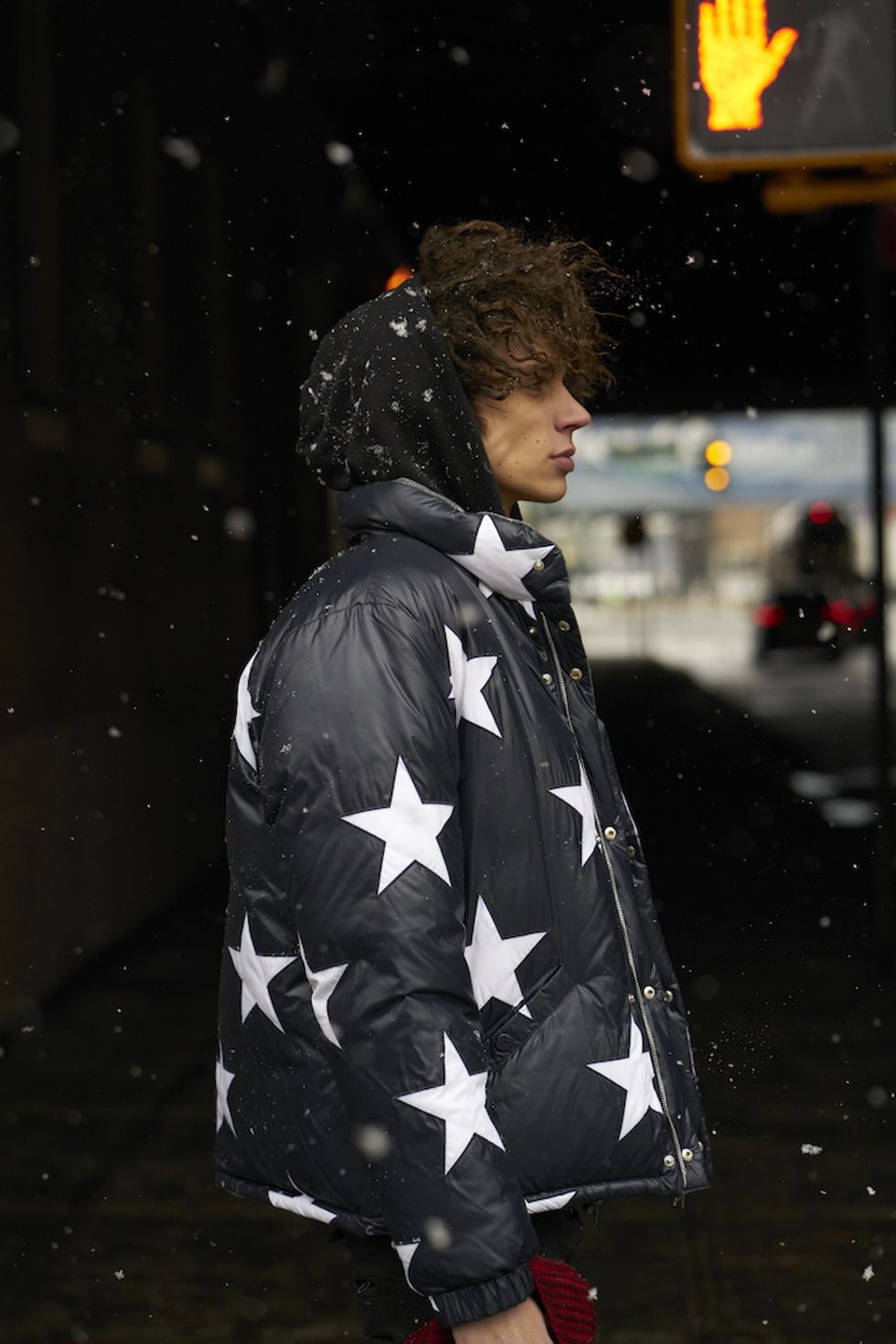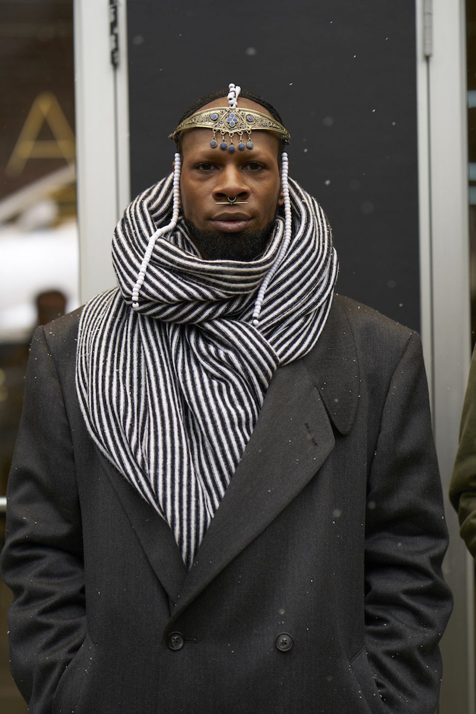 Men's Fashion Week came and went! It's a very special time of year in New York, when the genetically-blessed males of the species hit the streets en masse to flaunt their cheekbones, scowl handsomely, and test out whether or not their most outlandish hairstyles and accessories are "a thing." We braved the cold and snow to document these magnificent creatures in the wild, and divine the trends that the menswear vanguard will be rocking in 2017. We're seeing lots of faux fur, lots of real fur, western hats, head-to-toe monochrome looks, John Hughes movie realness, and in one instance, fishnet stockings.