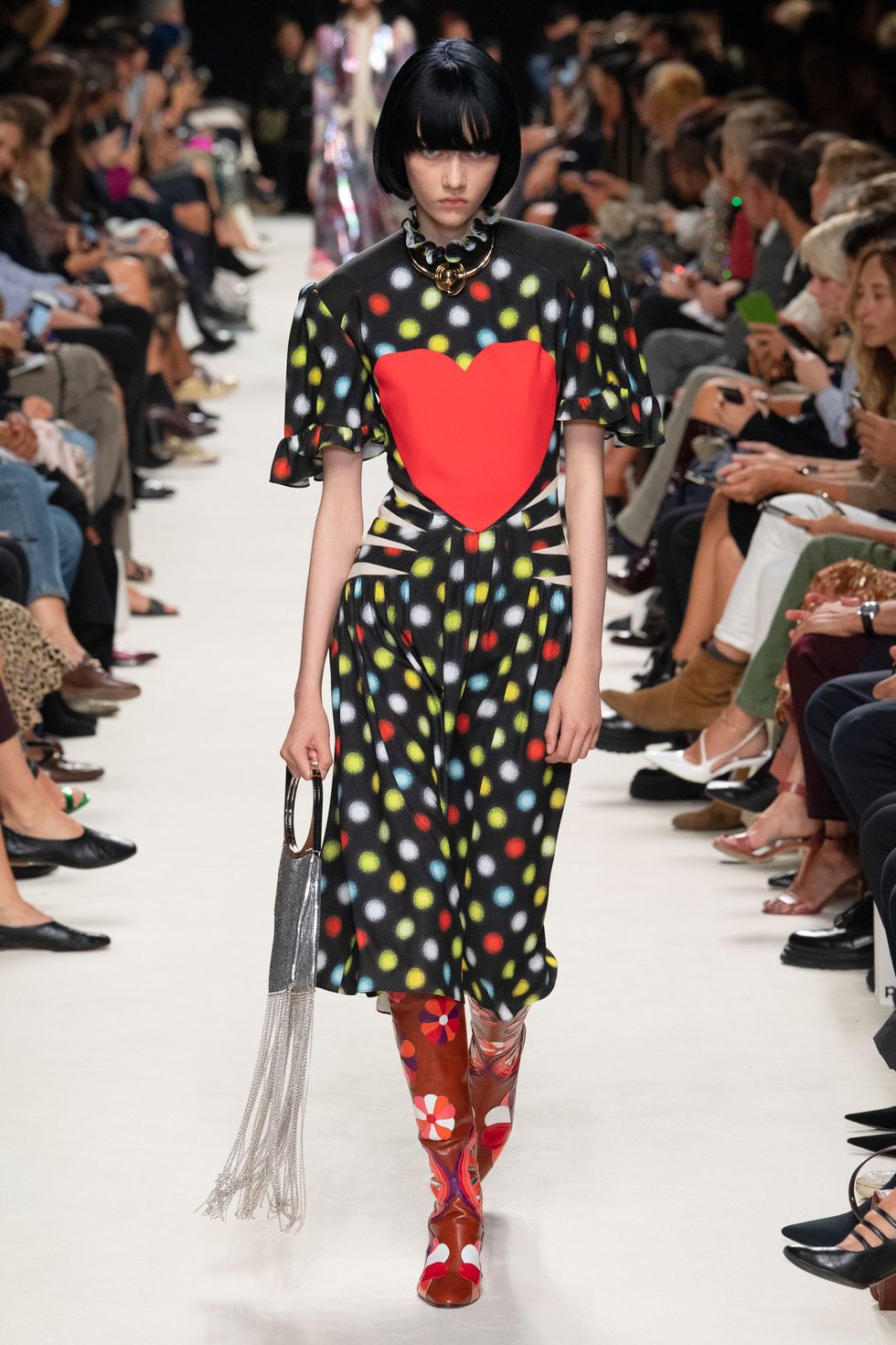 Big red hearts abounded in both the men's and women's looks, including a giant heart shape on a t-shirt and a multi-heart pattern on a chain link dress.