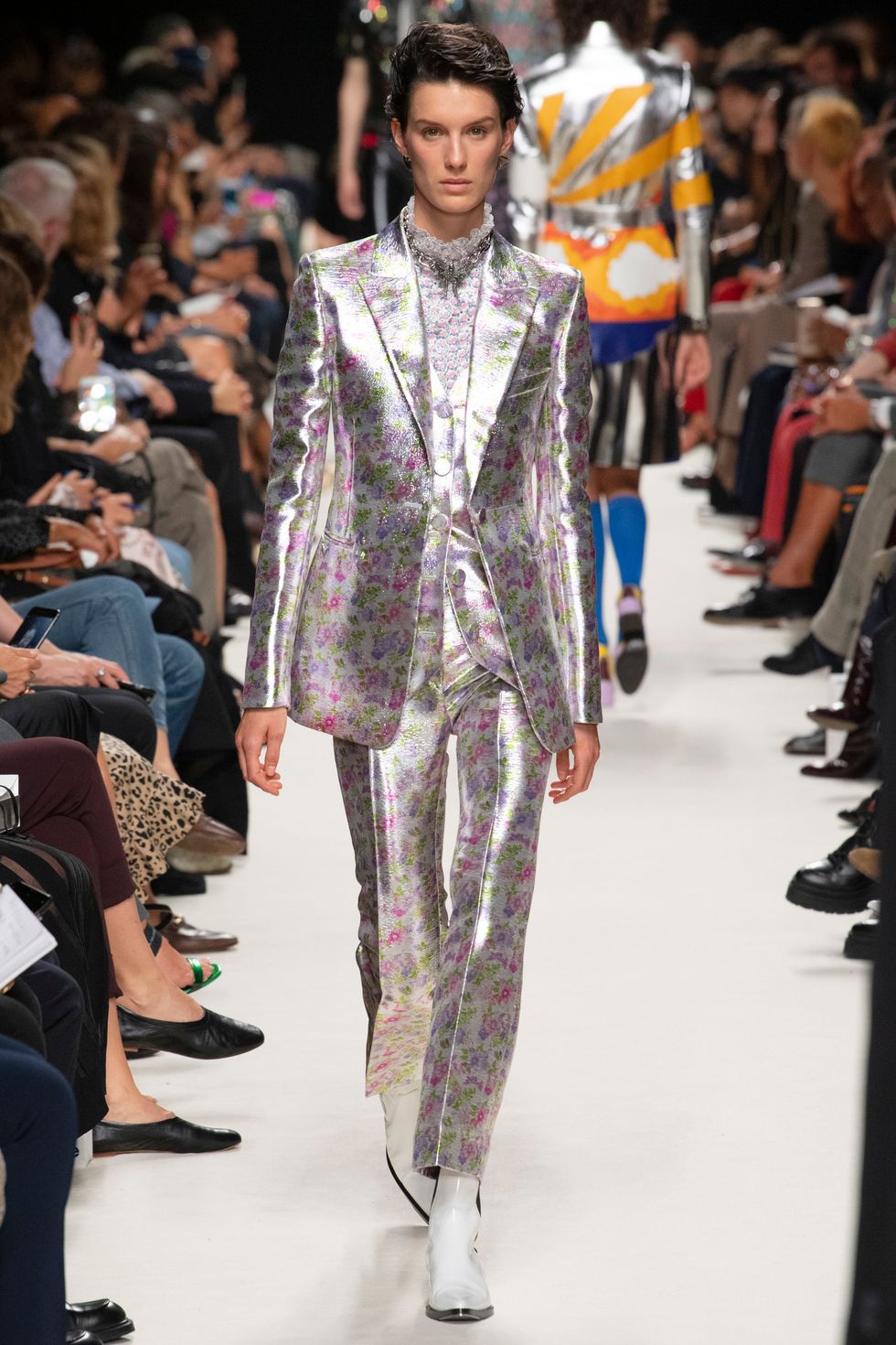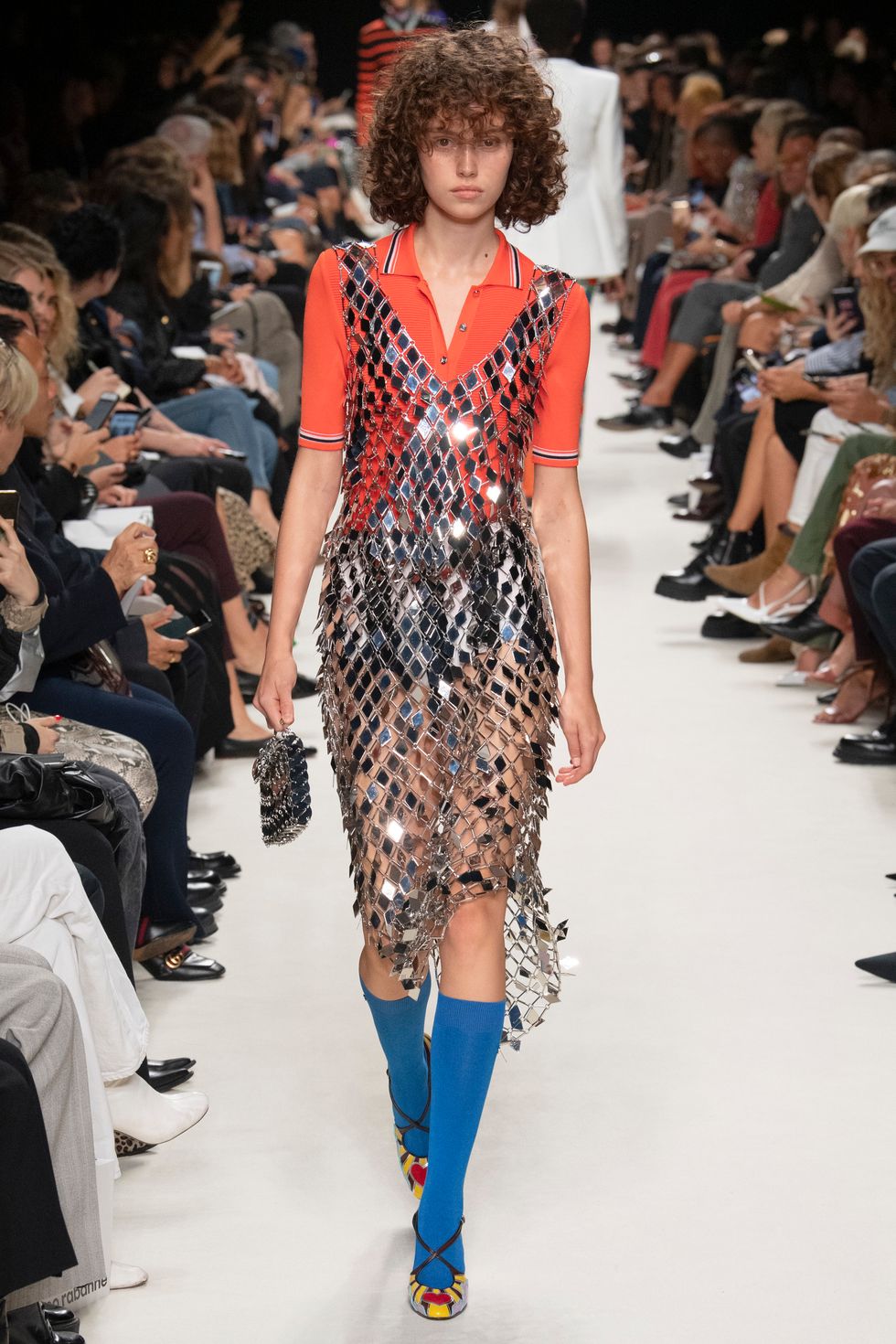 Paco Rabanne's signature use of silver once again came through in metallic dresses and shimmery suits.