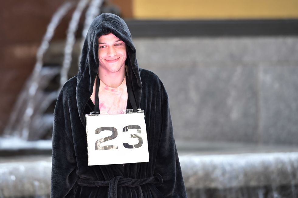 I really thought I was finally over Pete Davidson, then he goes and does this. The smile. The confidence! This MAN! I see what Kate Beckinsale saw in him. Davidson, whose regular gig is on SNL, now moonlights as a high fashion model. He walked for Alexander Wang's Collection 1 2020 runway show, and he could do this full time, if he wanted to, just one girl's opinion.