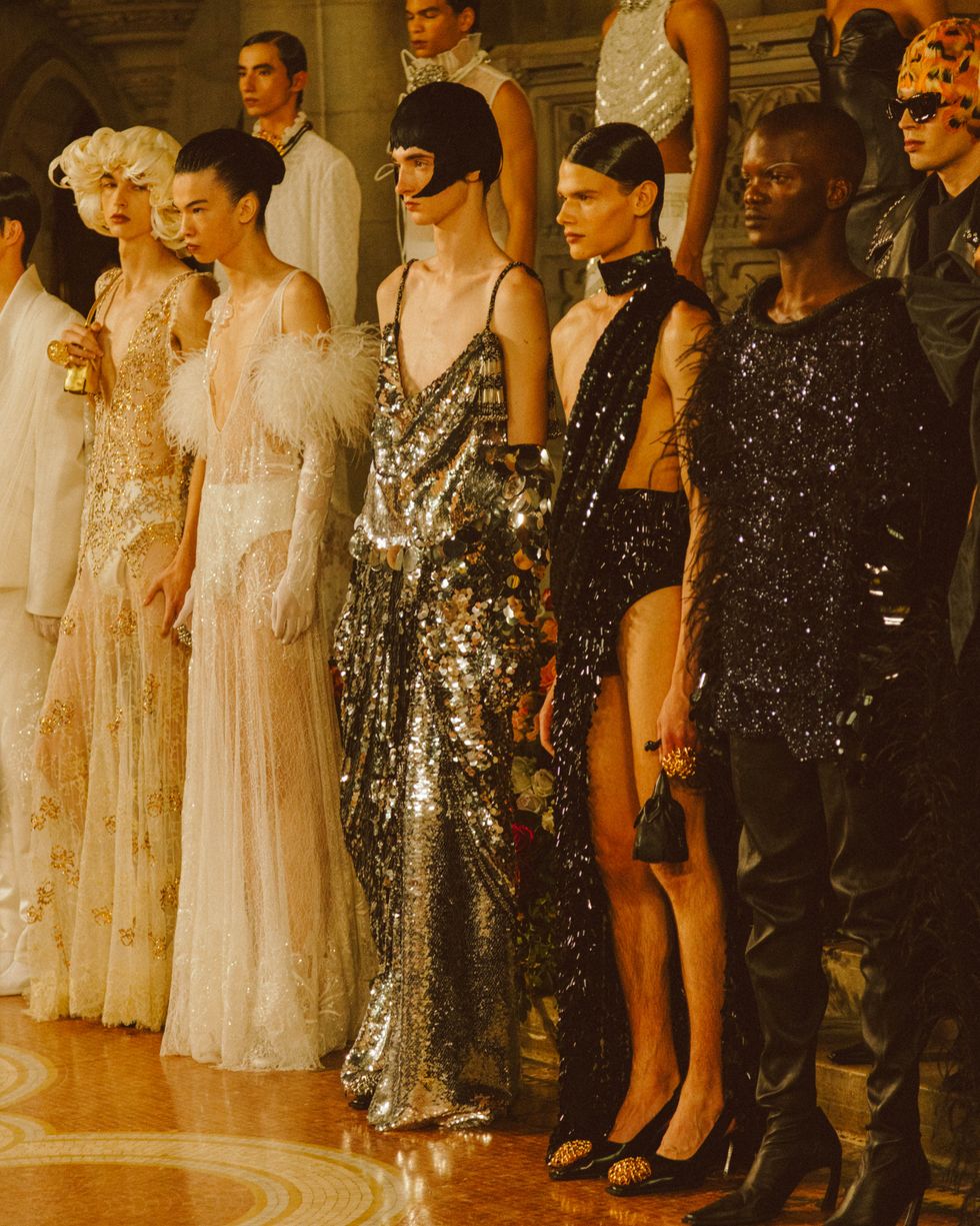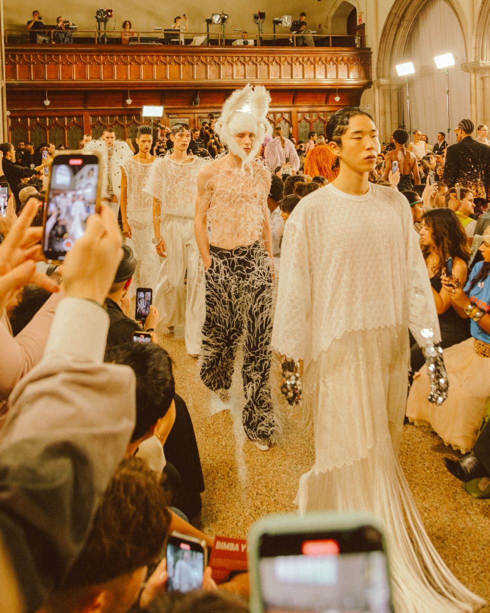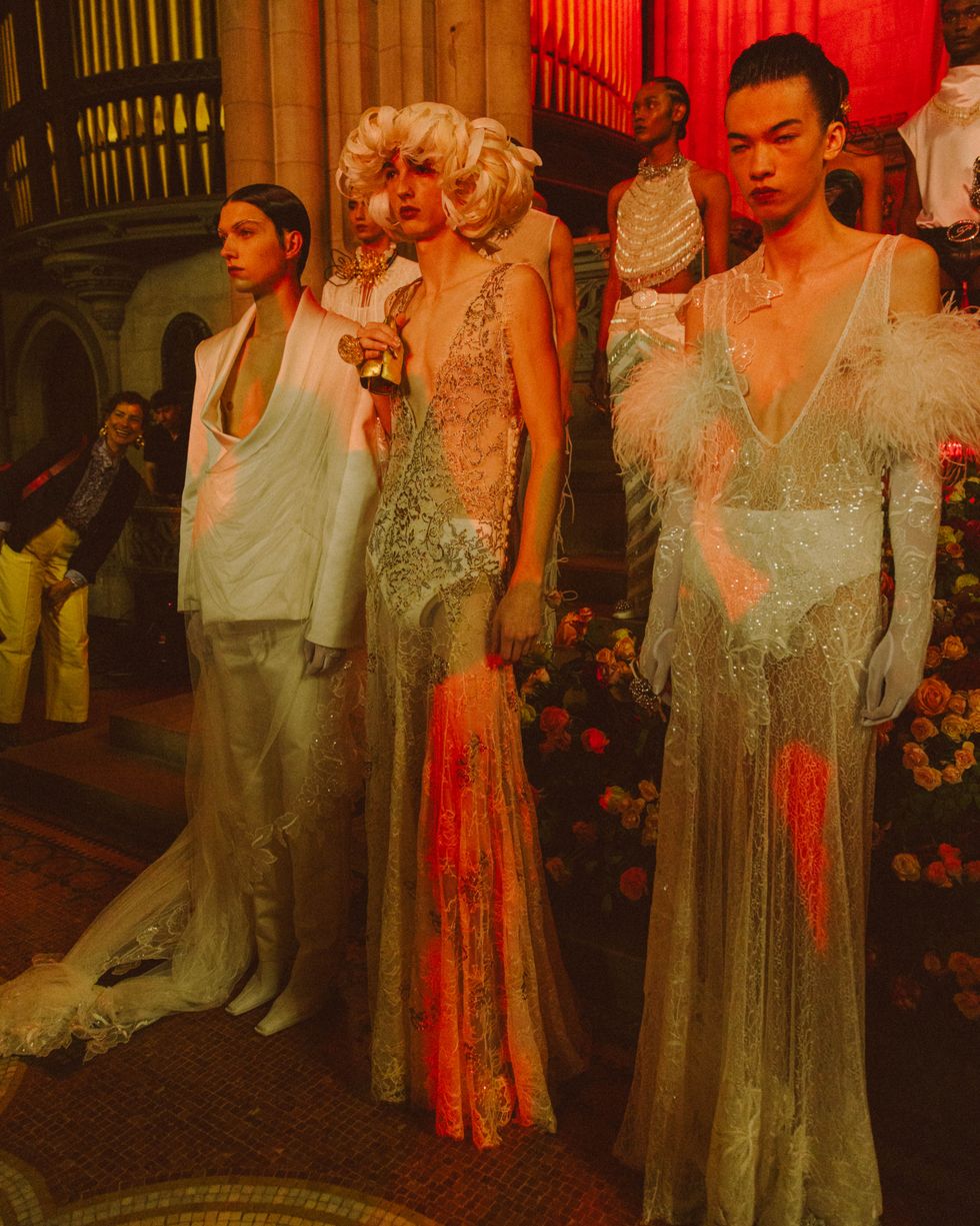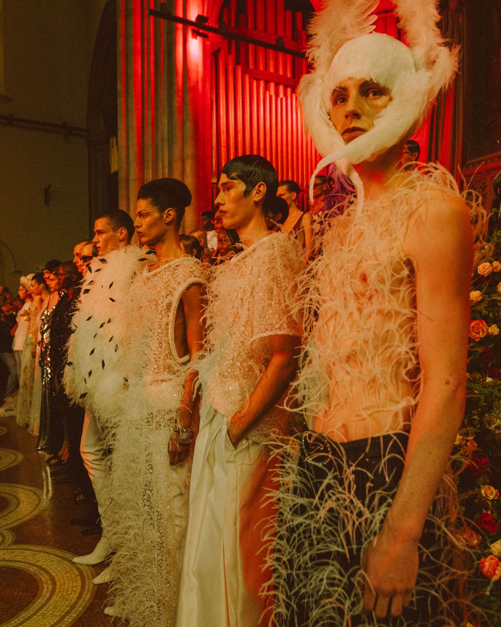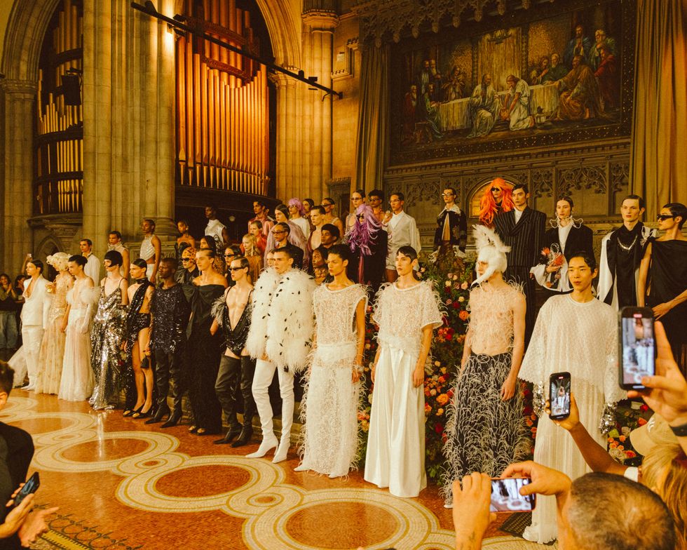 Who goes to Heaven, and who goes to Hell? This is what Alejandro Gómez Palomo was wondering for the Palomo Spain Spring 2025 collection, held at the Fourth Universalist Society cathedral in the Upper West Side.