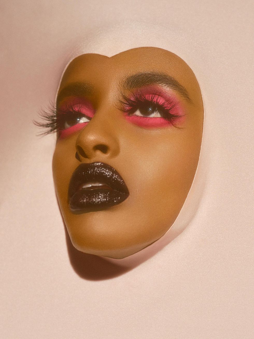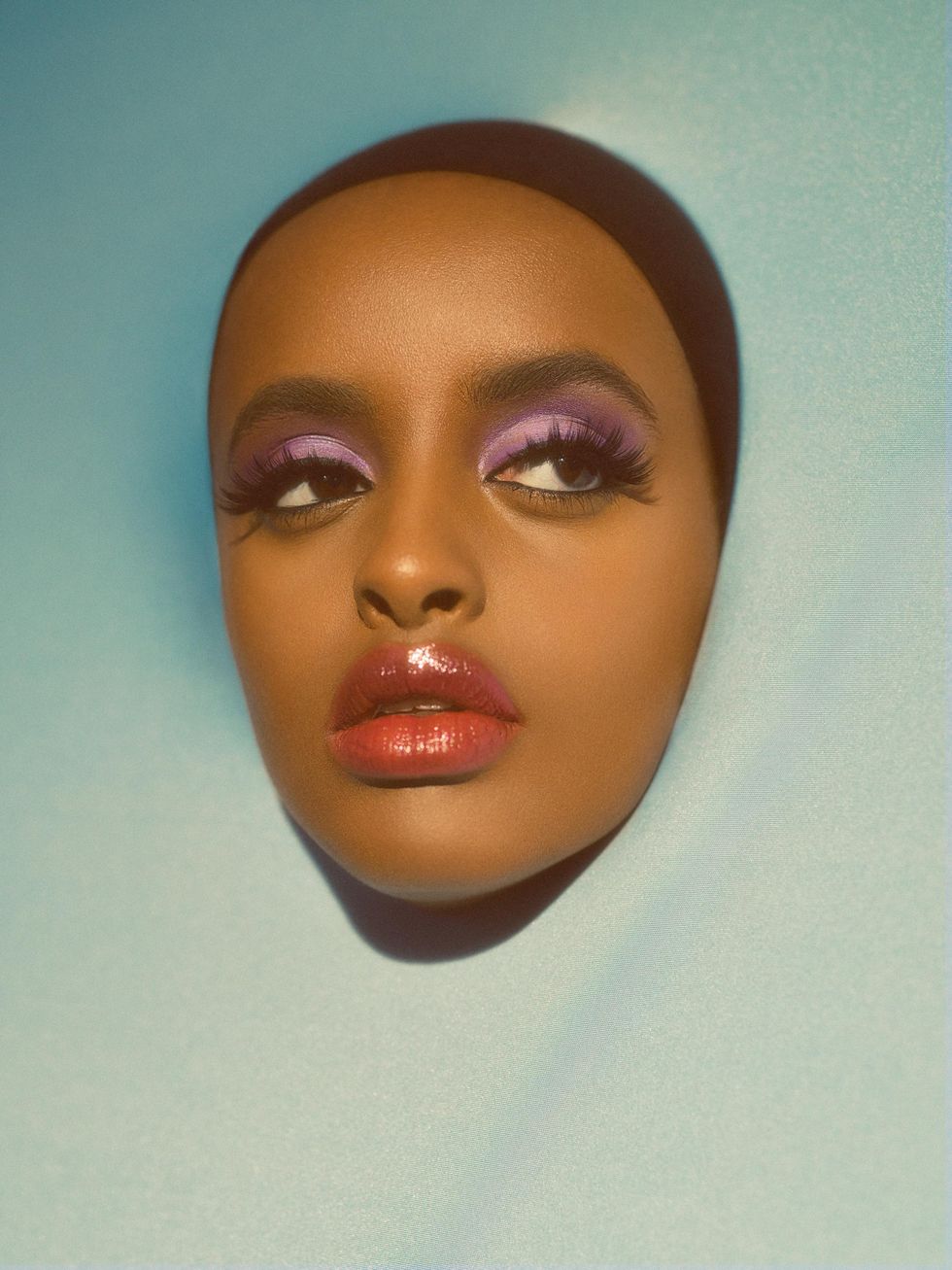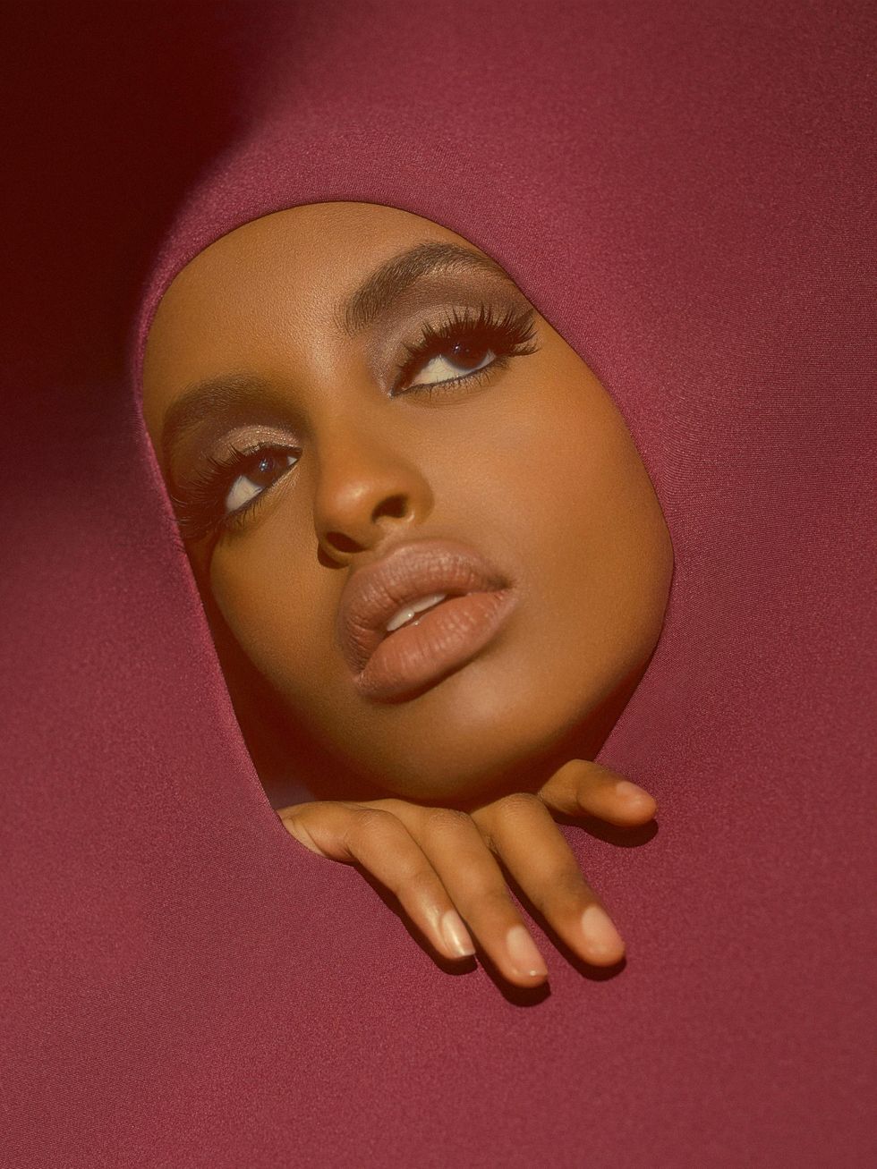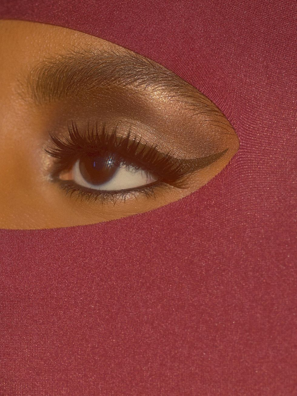 When most of the body is covered, your face becomes the center of attention and, most importantly, self-expression. Bold makeup, glowing skin and alluring eyelashes — all framed by a field of another bright color — make a strong statement on model Samira Mohamud.