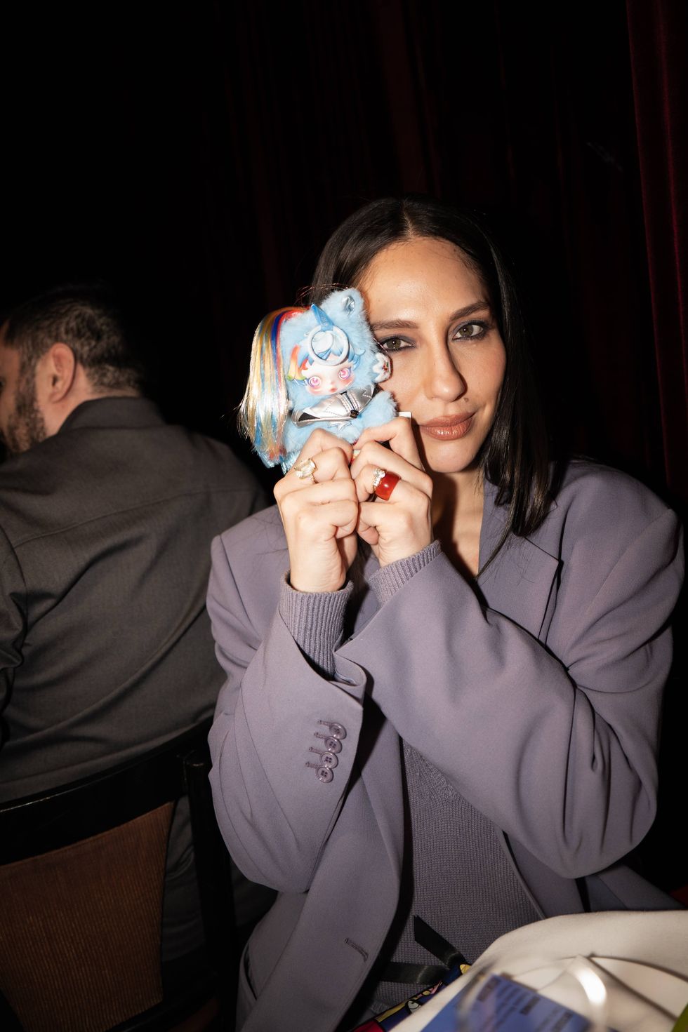 Guests posed with their SKULLPANDA collectibles, matching the playful, colorful energy of the collaboration to their own fashion week fits. All around the room, they were perched on the table for a photo op or clipped onto a bag as the ultimate conversation starter.