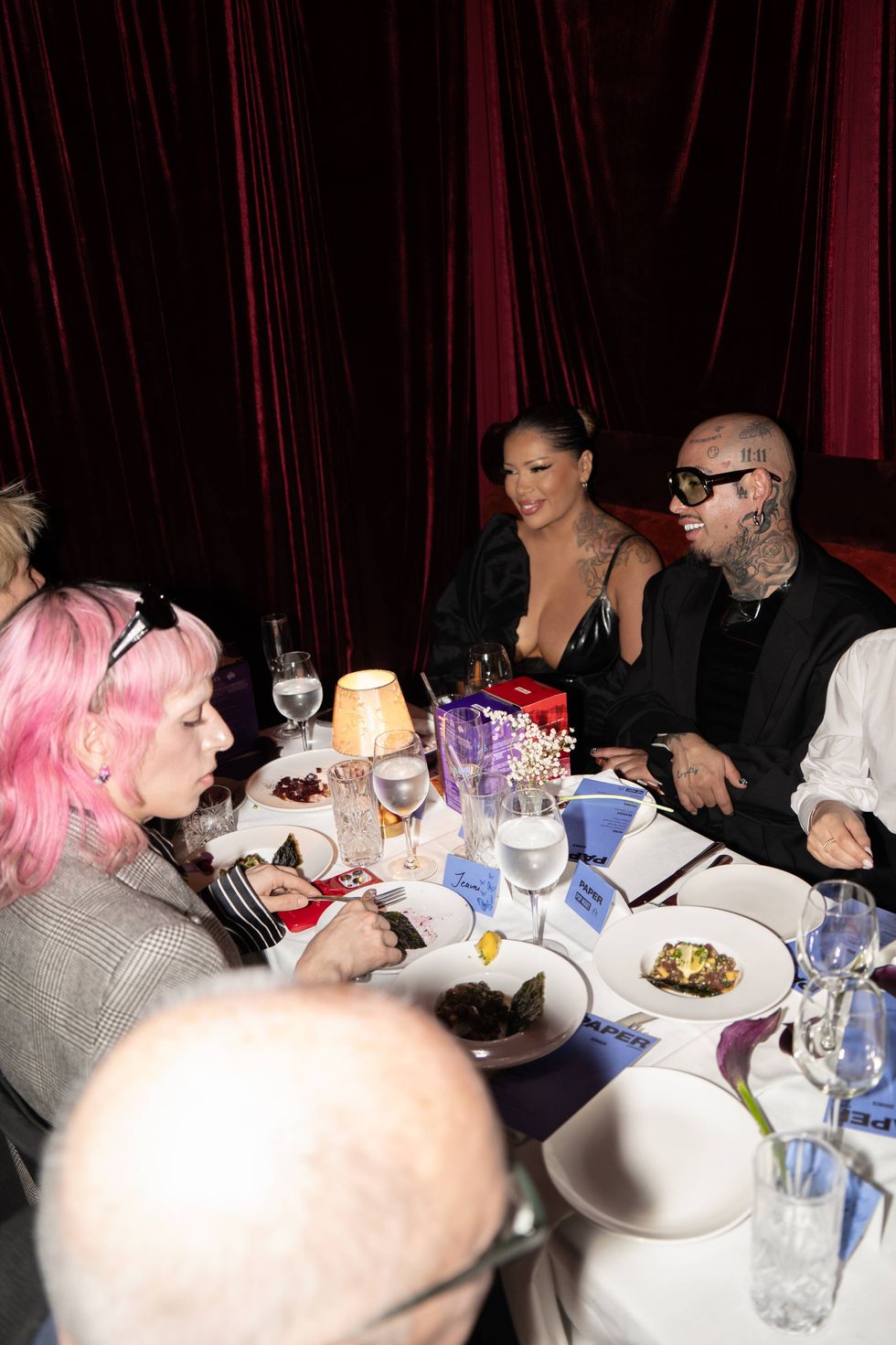The dinner took place at DEJAVU, the intimate secret supper club founded by Barış Köroğlu. Known for its layered, speakeasy-style interior that evolves throughout the evening, DEJAVU blends refined dining with nightlife energy, and the Desire Room, the venue's most intimate setting, set the perfect stage for the curated group of Latin talent convening to celebrate PAPER Español and Fashion Week. Among them were reggaeton icon Arcangel, Majo Aguilar, Angie Portillo and GIULIA, and creators Jordan Frazes, Josie Melano, Camila Ramon, Frost Hernandez, and Tefi Pessoa.