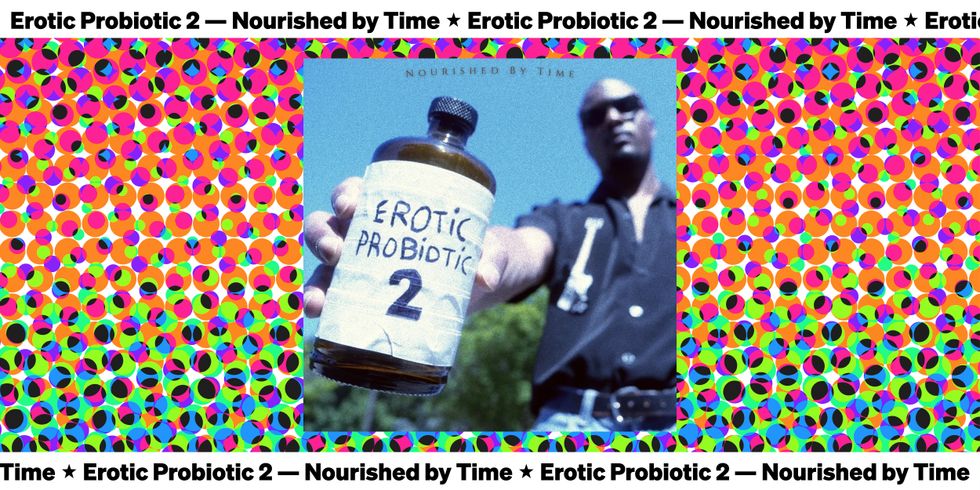 Erotic Probiotic 2, the joyful genre-fluid project of Baltimore-based artist Nourished By Time, pulls on the sounds of the late ‘80s and early ‘90s to give us something undoubtedly fresh. Across this breakout album, Nourished By Time (AKA Marcus Brown), harps on themes both expansive and intimate: romantic yearning, being broke, fear of death, capitalism. His wry lyricism and warbling baritone delivers lines that hit like a soft punch, harsh but sweet. In a world that seems stuck on oscillating between cloying earnestness and craven, market-tested mediocrity, I found Erotic Probiotic 2 to be the rare project that is free of any pretense. Just some good ass music. Like a probiotic, it goes down easy.