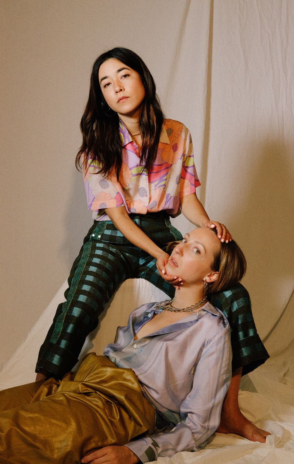 (On Maya) Top: Rachel Comey, Pants: Silvia Tcherassi, Necklace: John Hardy, Earrings: Hirotaka (On Anna) Top: Emilio Pucci, Pants: Tibi, Jewelry: John Hardy