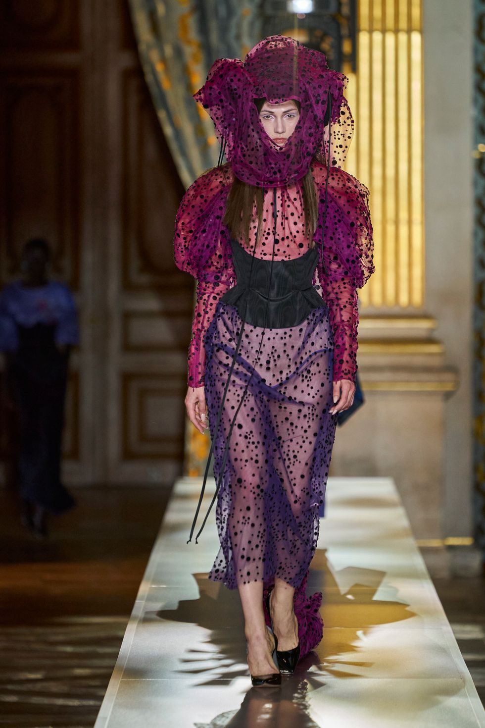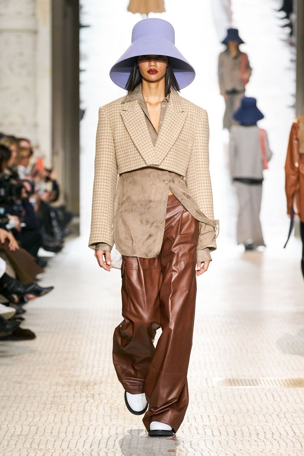From the signature lampshade hats made famous by Nina Ricci to similar structured styles at Ralph & Russo, the statement hat is by far the accessory of the season. (Kenzo's floppy versions were another standout look.)