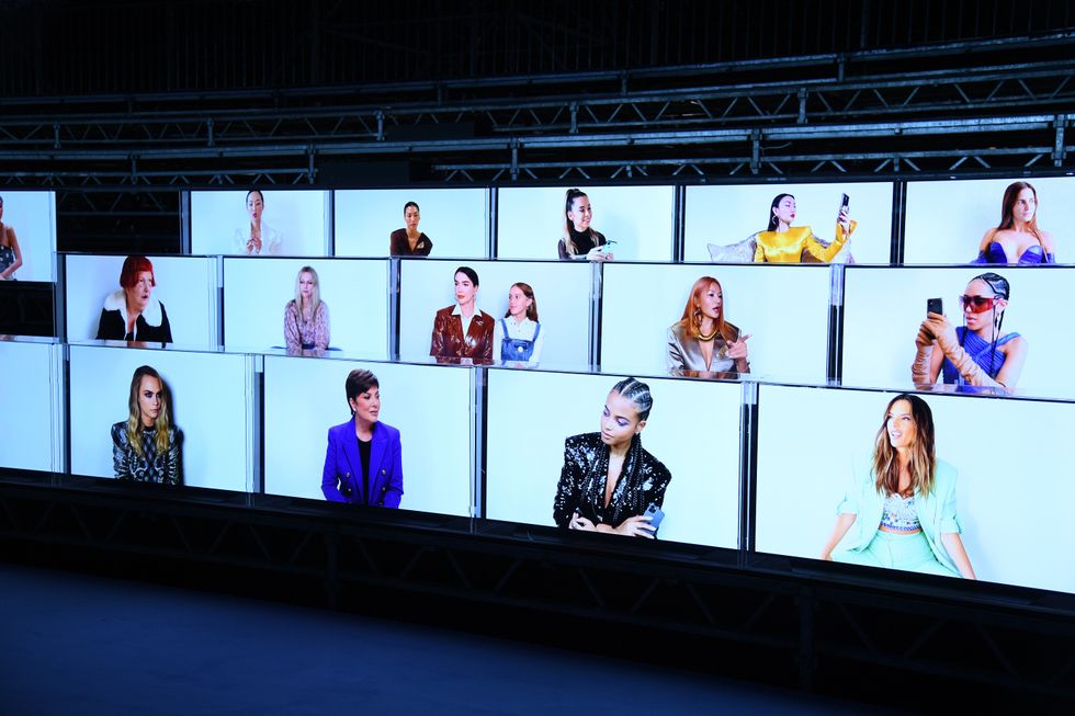 Balmain teamed up with LG for the screens depicting VIP guests who couldn't attend the show in person. Photo: Getty