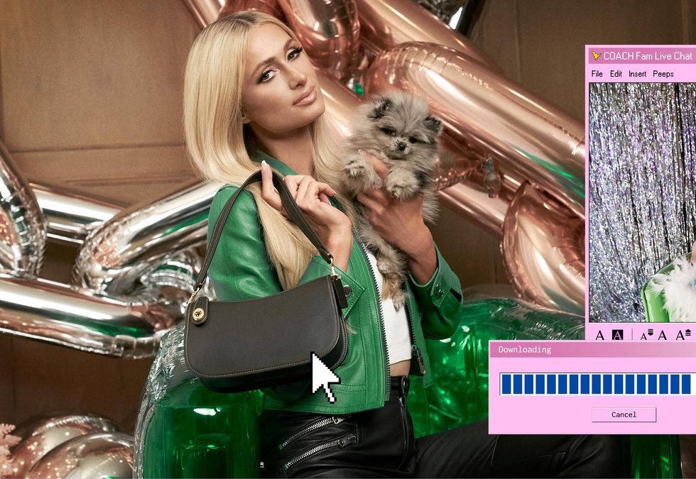 Designed like a bubblegum pink AOL chat room, the Christelle de Castro-directed video begins with Thompson tossing on his Swinger before starting a chat with Hilton and Petras. While posing with their Swingers (gifted by Hilton), the cast chats about their plans to wear their new Coach bags to a party later.
