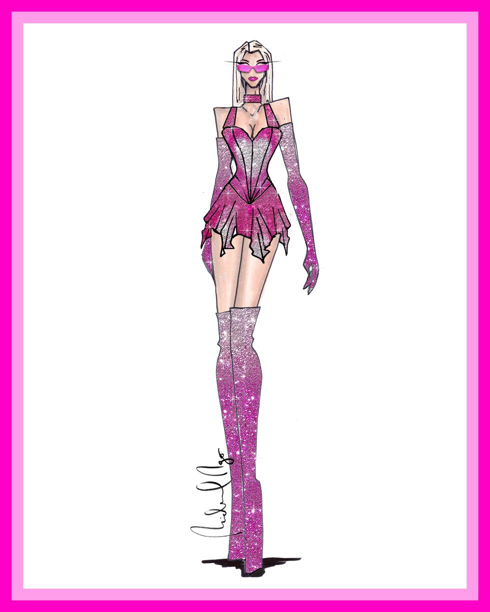 "For the opening act (Act I), we needed a powerful, bold color to make an unforgettable statement. Naturally, we chose Paris' signature pink, drawing inspiration from her younger days. Partnering with Michael Ngo, we crafted the epitome of a Barbie pop princess ensemble, drenched in a gradient of ombre pink Swarovski crystals that shimmered with every move."