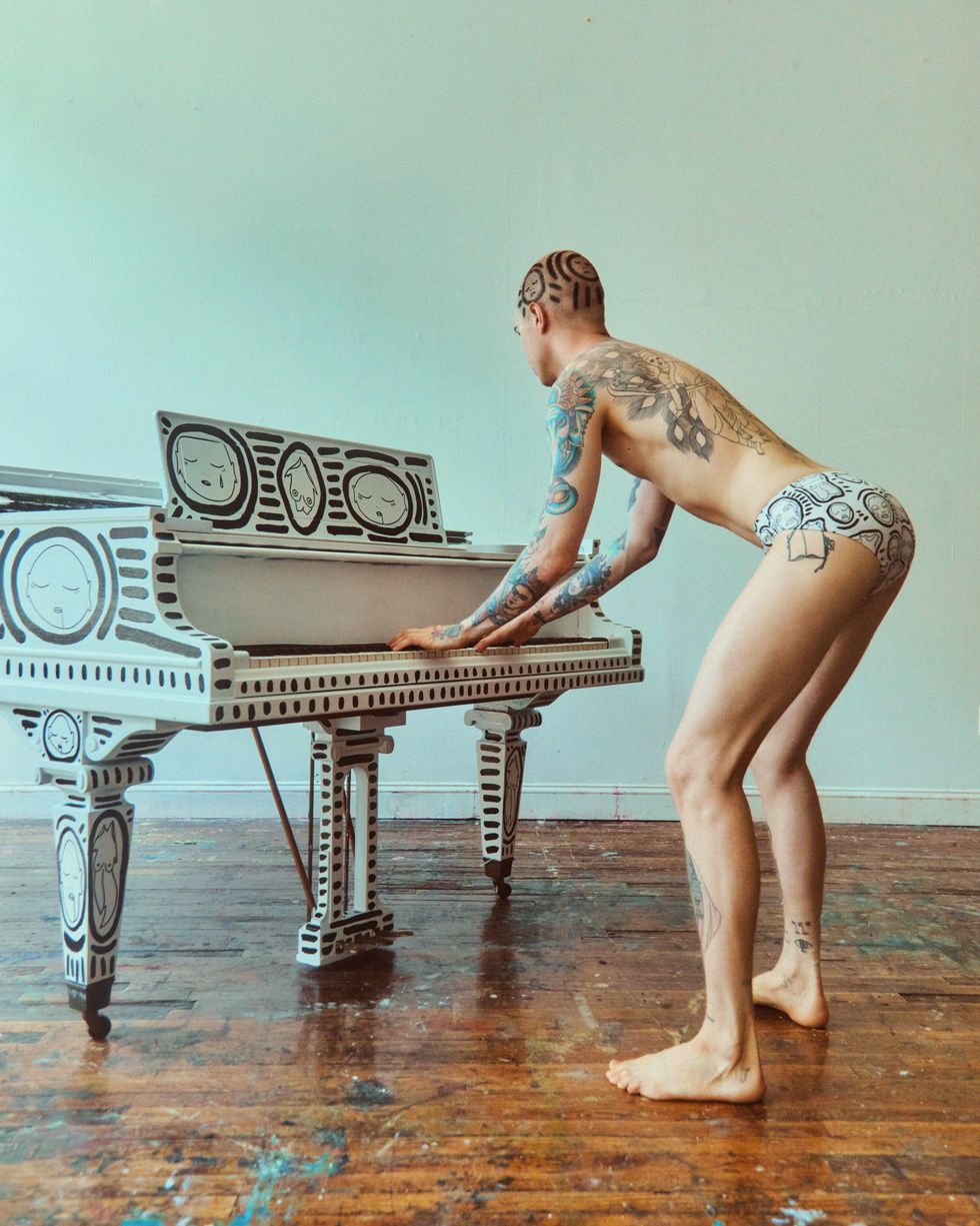 Painter and designer Patrick Church has transformed a grand piano into a large-scale canvas for a piece so erotic that it gives "tickling the ivories" a whole new meaning. From lid to keys, the entire piece is covered in Church's designs. The New York-based artist took on the daunting project of painting characters from his "All Over You" series, a cast of solemn faces and headless breasts, onto the instrument with a smile and a fire.