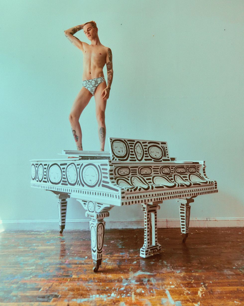 "I wanted to create something special, something extravagant and opulent," Church says of the project. "To me, a grand piano is a timeless artifact and is the perfect representation of this feeling, and fuses together my love of art and music." The accompanying video for the project showcases Church losing himself in the music, caressing each line and posing on the lid in his underwear. Each stroke connects the faces and torsos he's imagined, swirling between them and linking them somehow through a somber eroticism found only elsewhere in tears of ecstasy.