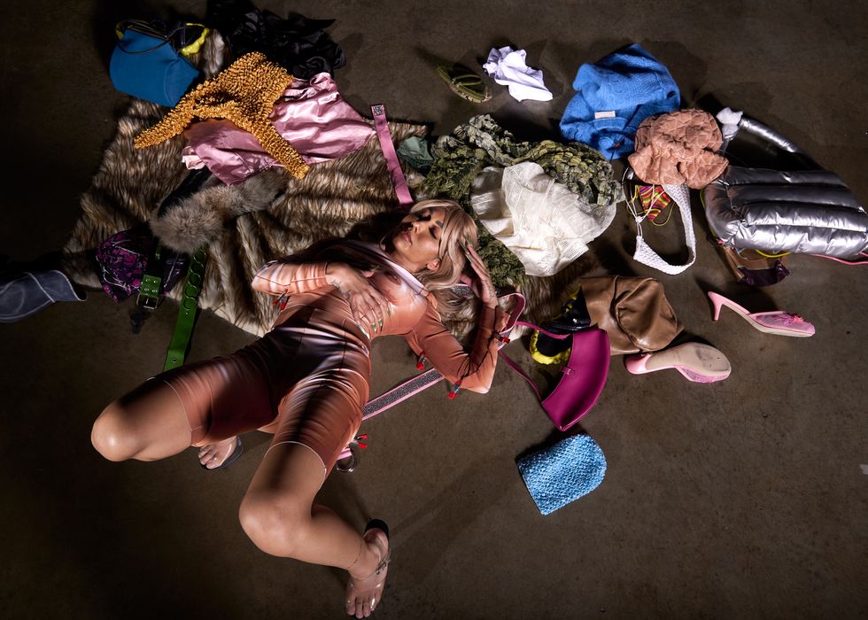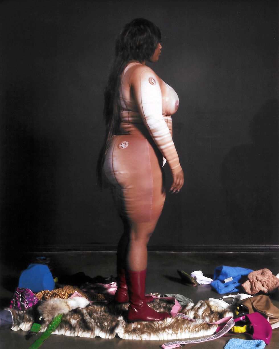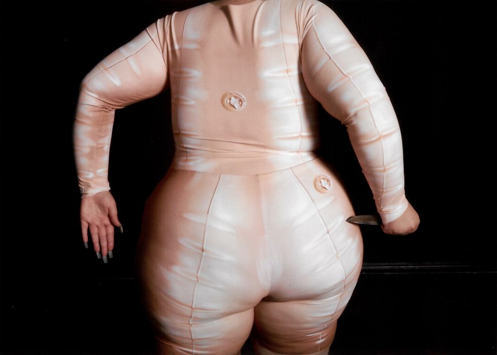 This led me to what that means in its most extreme and final form: a life-size sex doll. I was drawn to the accessibility and quick fix of inflatable sex dolls, in particular. I ordered a bunch of blow-up dolls and photographed them at different angles (shoutout to my landlord for the unexpected visit). I needed to figure out how to translate that imagery to an actual body and have it be wearable. I was like okay how can I blow up a booty without relying on 3D shapes? This eventually led me to The Inflatable Set, a new body in a box.