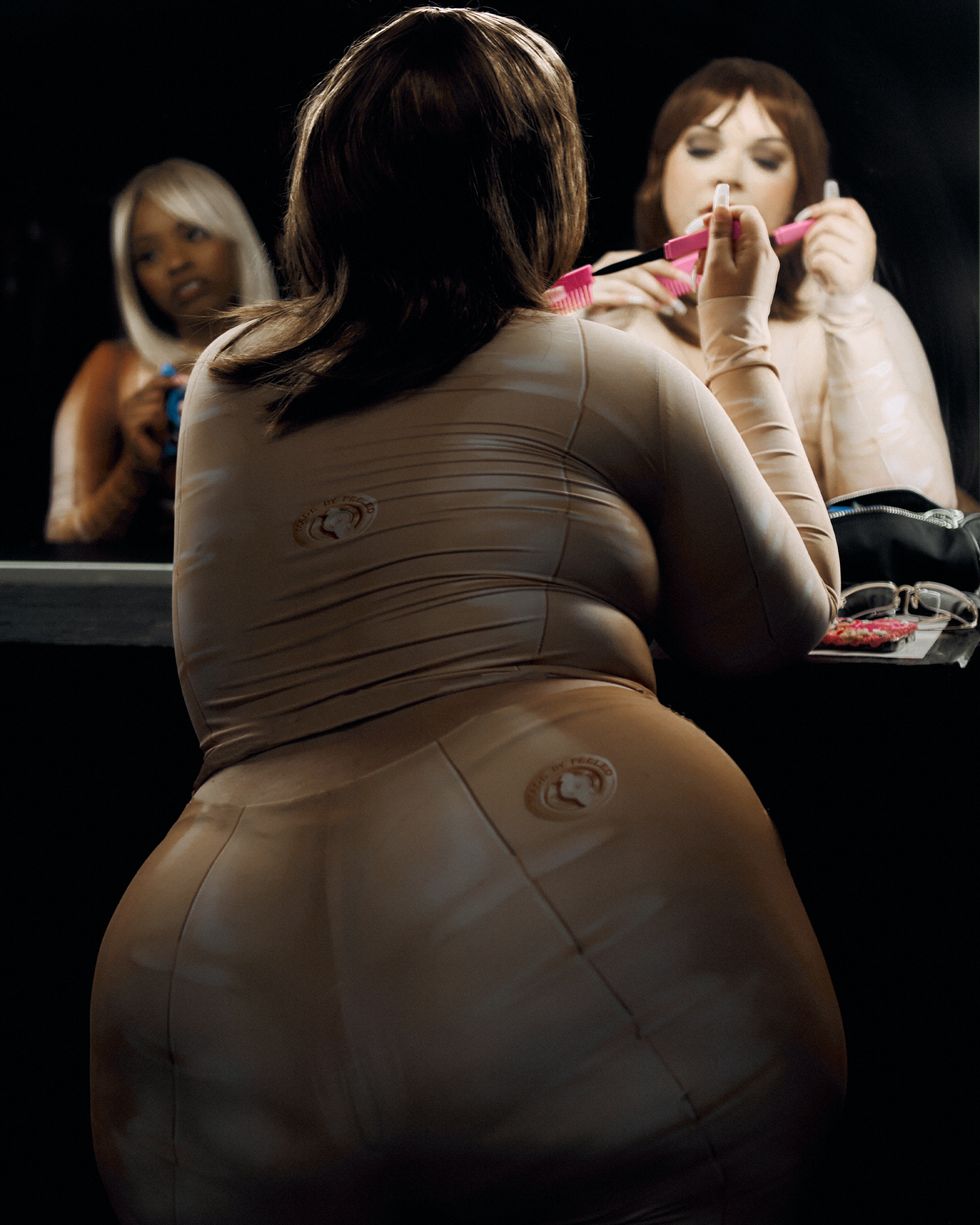 I talked to my talented friend Elle about wanting to use the lighting to create intimacy, to make us feel like we are getting a sneak peak into highly personal moments. The shoot was also meant to mimic the strong community that women create within an industry or ecosystem — the way we protect and entertain one another, the act of getting ready together and how we find connection in that process, the way we show up and hold families together, the way we have fun and bond even in activities that may have first originated for the pleasure of others versus ourselves.