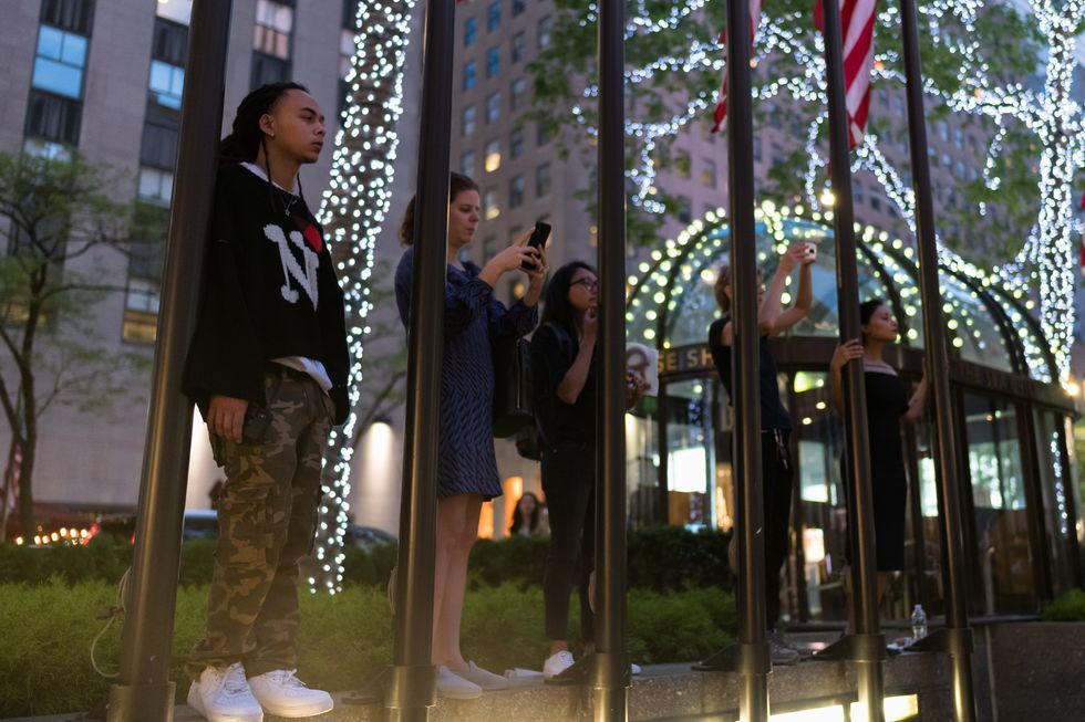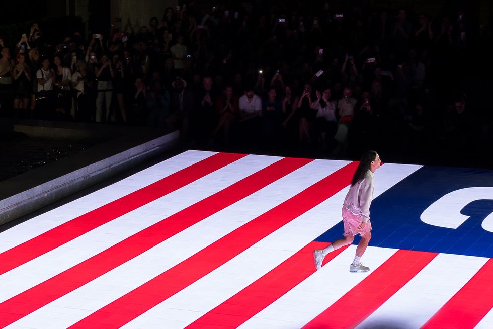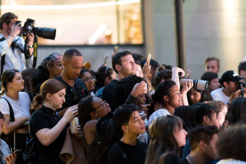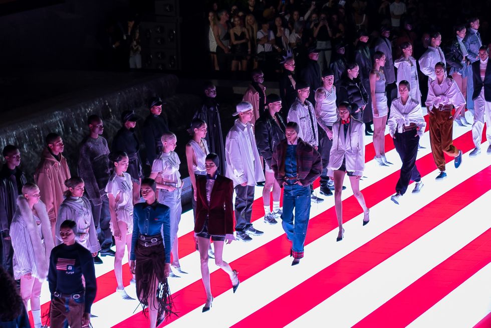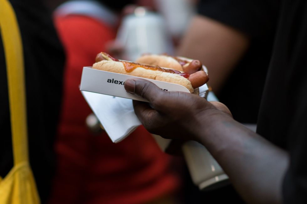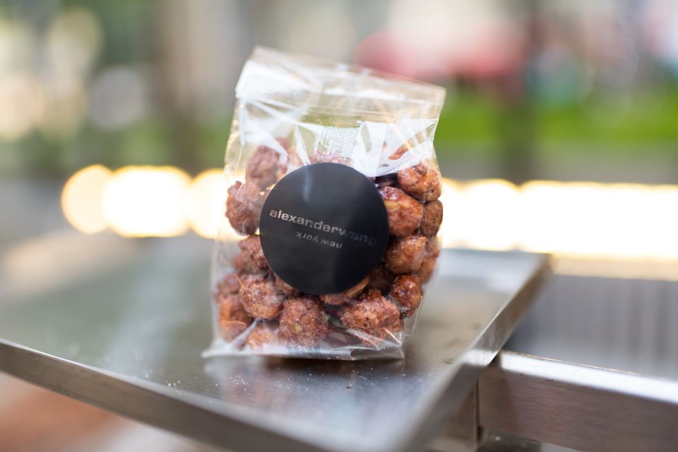 But, really, what made Collection 1 2020 such a spectacle was the fact that it was opened to the public. While VIPs and executives gathered by the checkerboard runway below, people were watching from above by the sidelines of the iconic Rockefeller Center fountain. And Wang made sure that New Yorkers and visitors felt welcome, even providing free New York treats such as hotdogs, pretzels, roasted nuts, and canned snow cones and green tea slushies with the Alexander Wang signature label, of course.