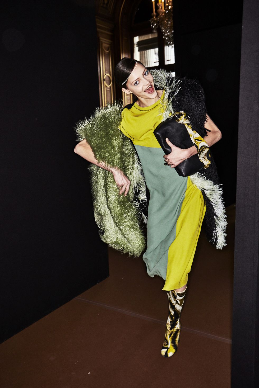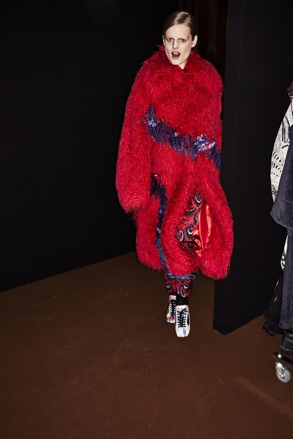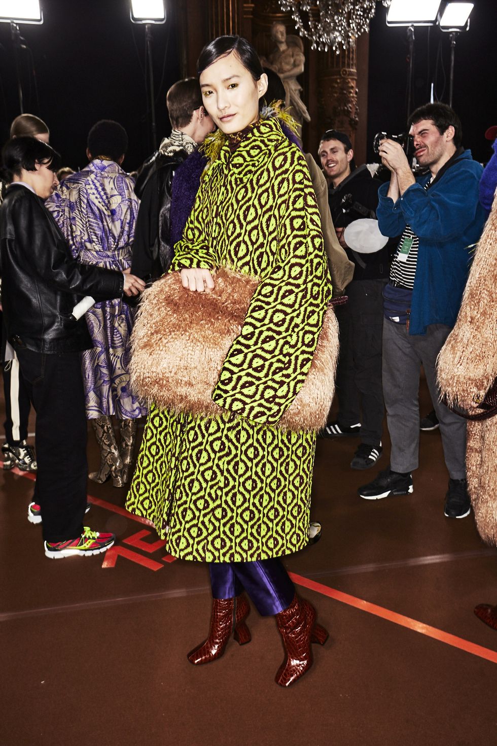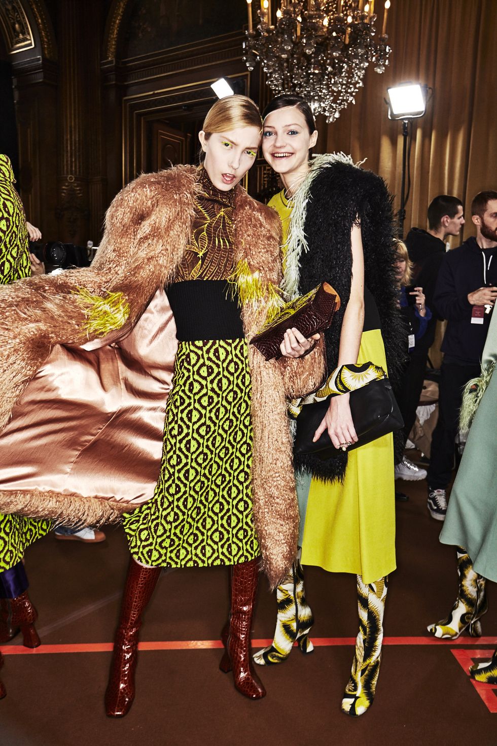 Colorful coats were anchor looks, with Dries' take on the bomber jacket (looks like the style is here to stay for a while longer), the anorak (hello road cone orange!) and full-length fluffy furs (perfect to don when you're running to meet Miranda on New Years Eve).